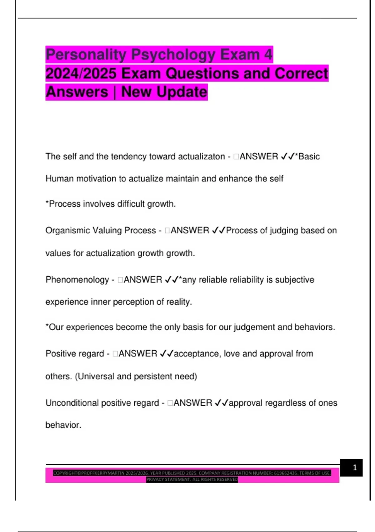 Conditions of worth - 🧠ANSWER ✔✔Only worth of approval for desirable