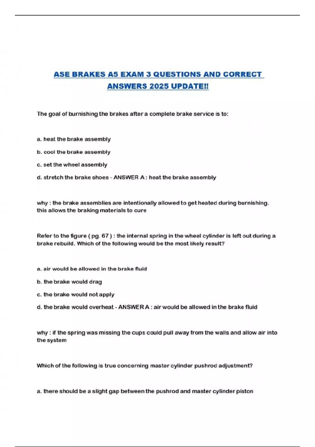 ASE BRAKES A5 EXAM 3 QUESTIONS AND CORRECT ANSWERS 2025 UPDATE!!...
