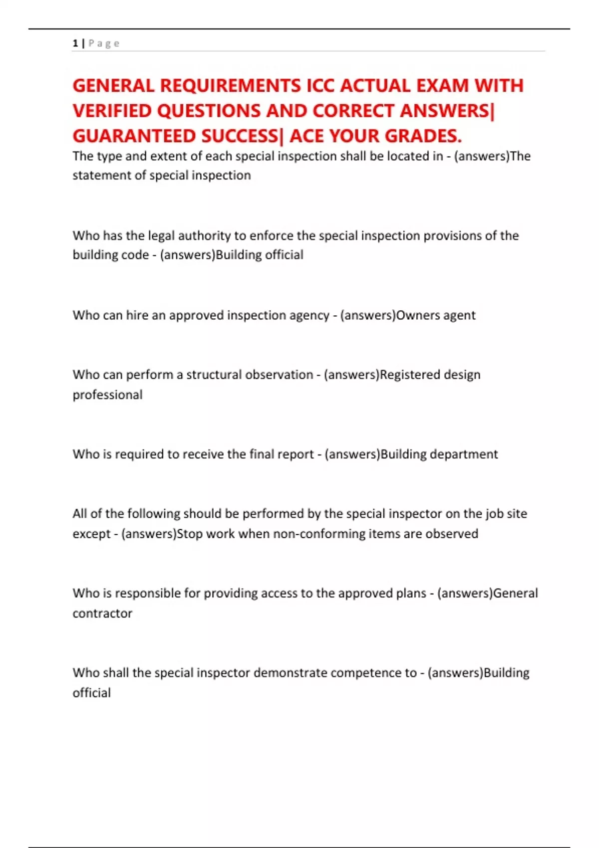 GENERAL REQUIREMENTS ICC ACTUAL EXAM WITH
