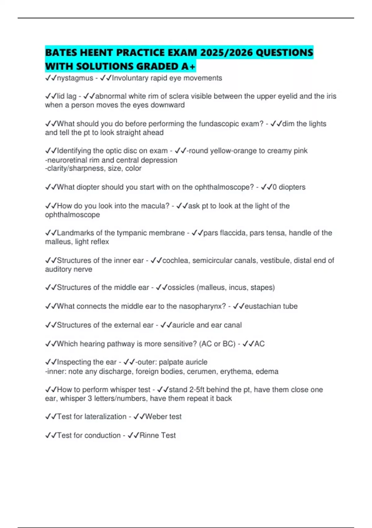 BATES HEENT PRACTICE EXAM 2025/2026 QUESTIONS WITH SOLUTIONS GRADED A+