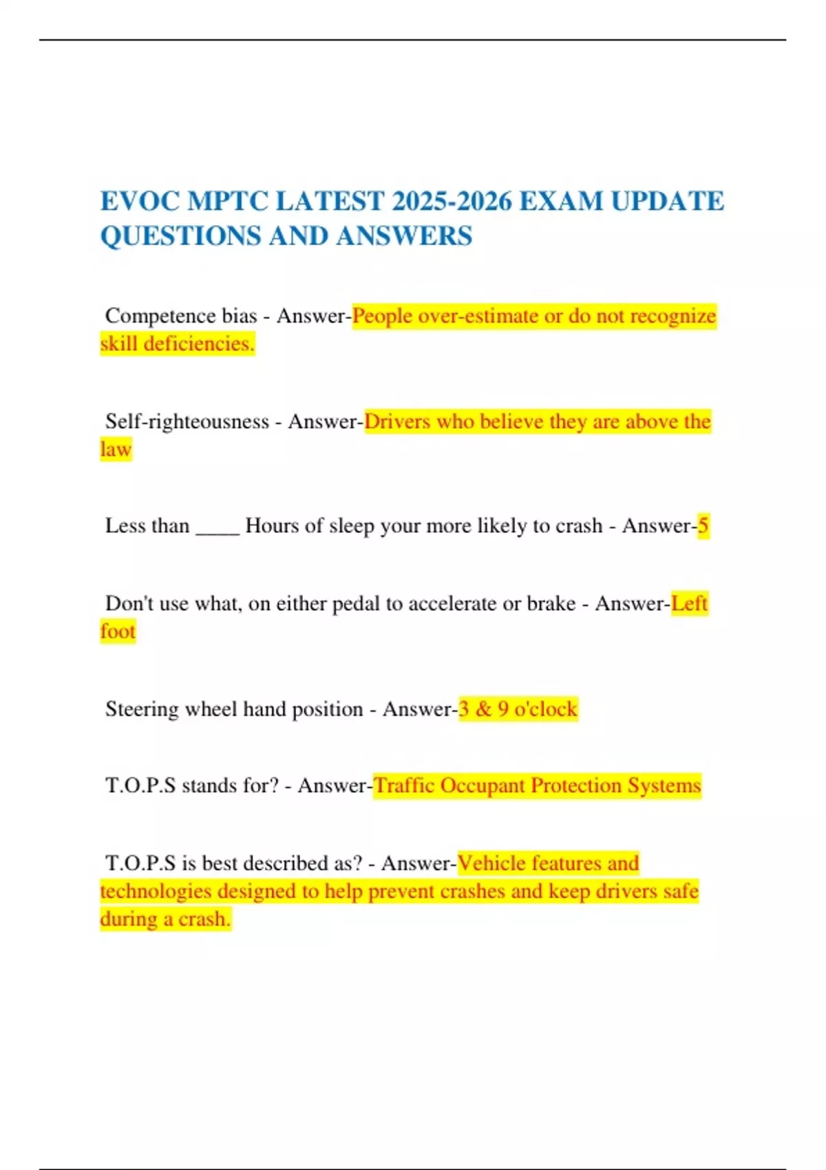 EVOC MPTC LATEST 2025-2026 EXAM UPDATE