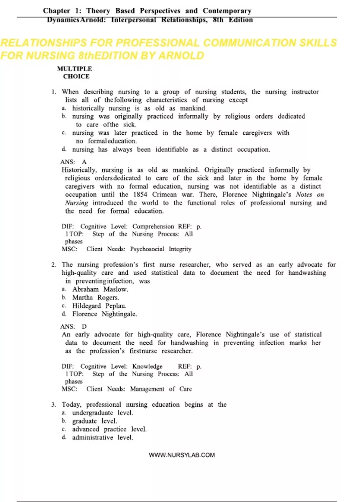 TEST BANK For Interpersonal Relationships: Professional Communication Skills for Nurses 8th Edition by Elizabeth C. Arnold Kathleen Underman Boggs