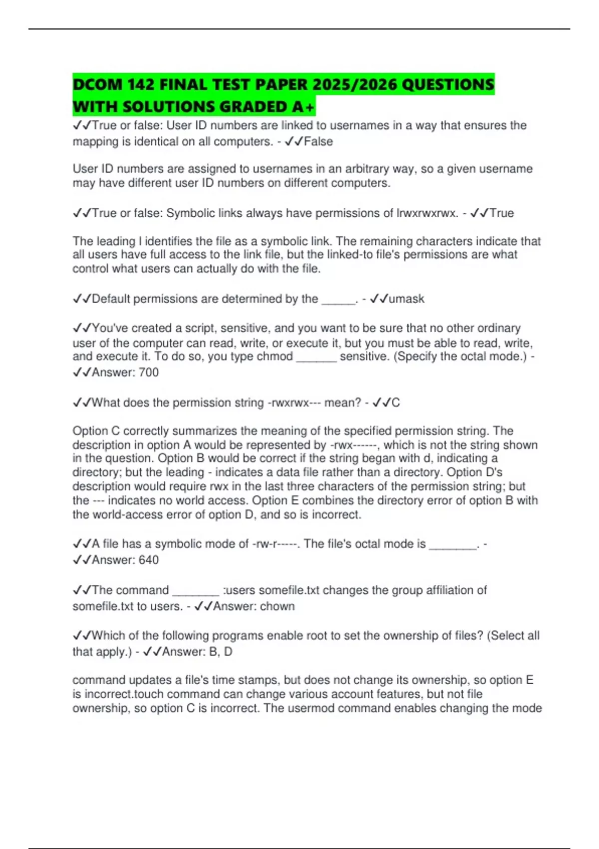✔✔True or false: Symbolic links always have permissions of lrwxrwxrwx. - ✔✔True