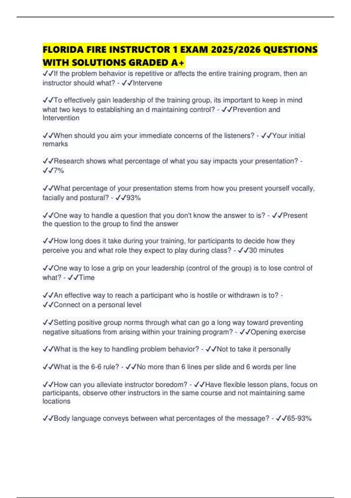 FLORIDA FIRE INSTRUCTOR 1 EXAM 2025/2026 QUESTIONS WITH SOLUTIONS GRADED A+