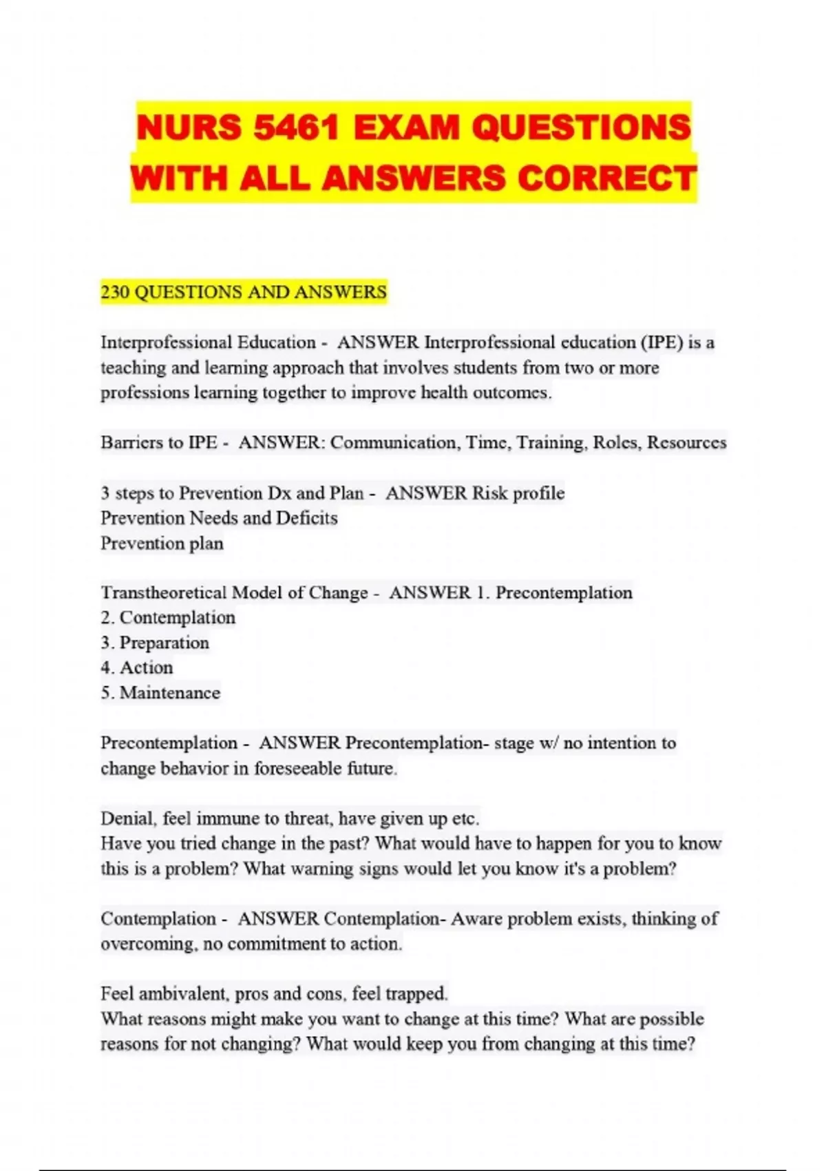 NURS 5461 EXAM QUESTIONS WITH ALL ANSWERS CORRECT