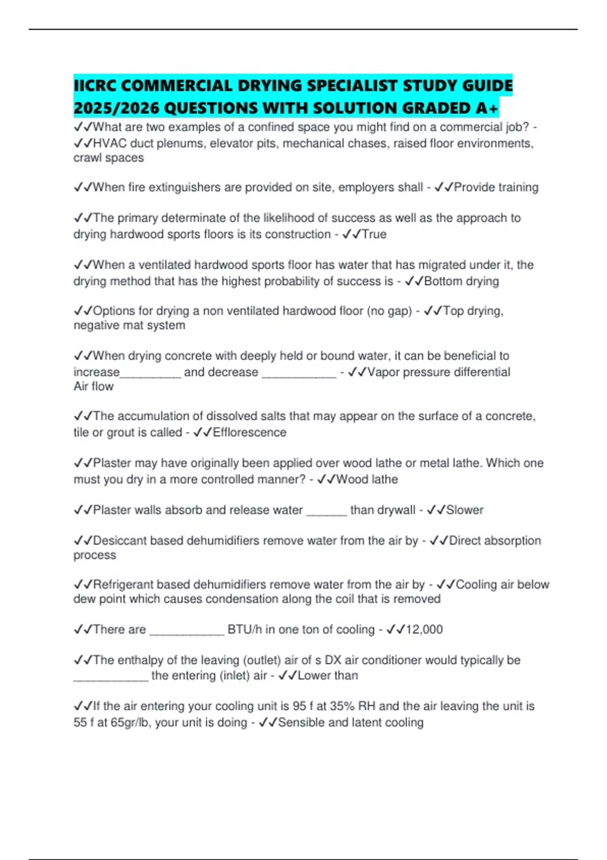 IICRC COMMERCIAL DRYING SPECIALIST STUDY GUIDE 2025/2026 QUESTIONS WITH SOLUTION GRADED A+