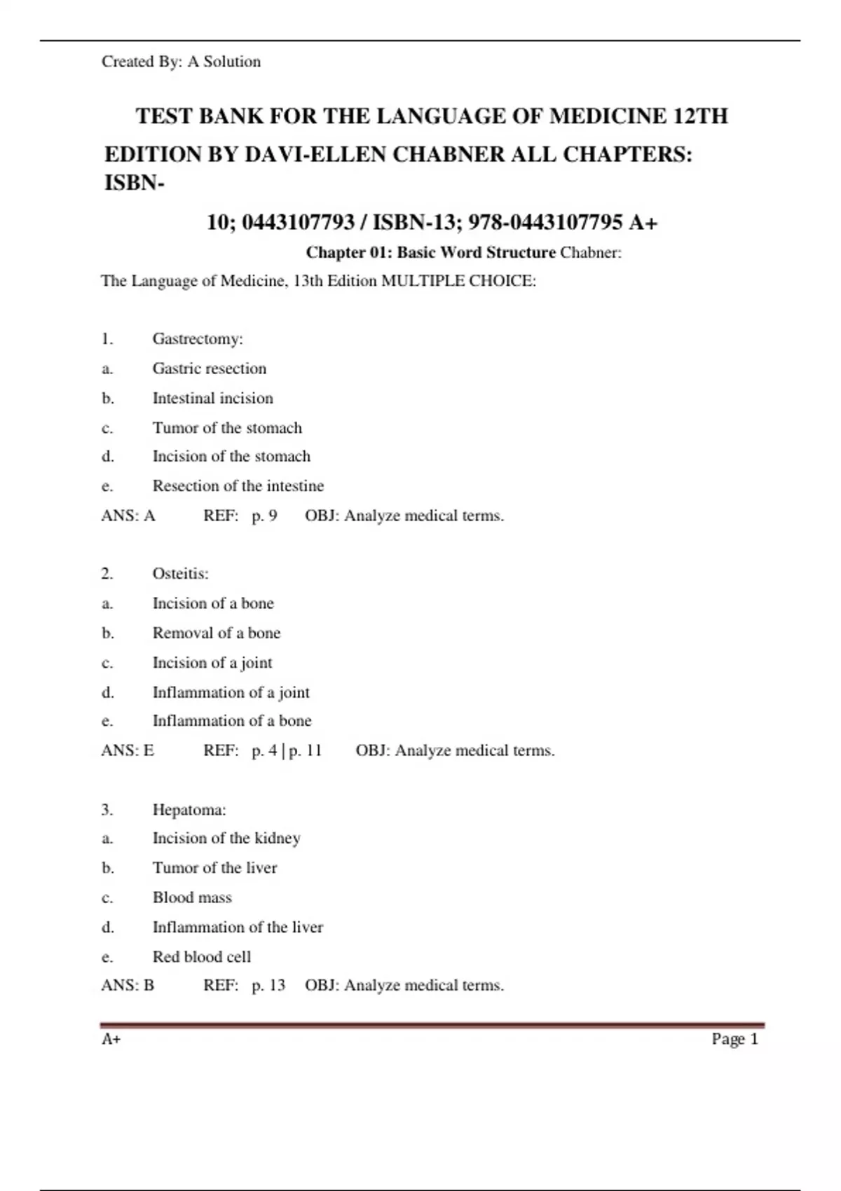 TEST BANK FOR THE LANGUAGE OF MEDICINE 12TH