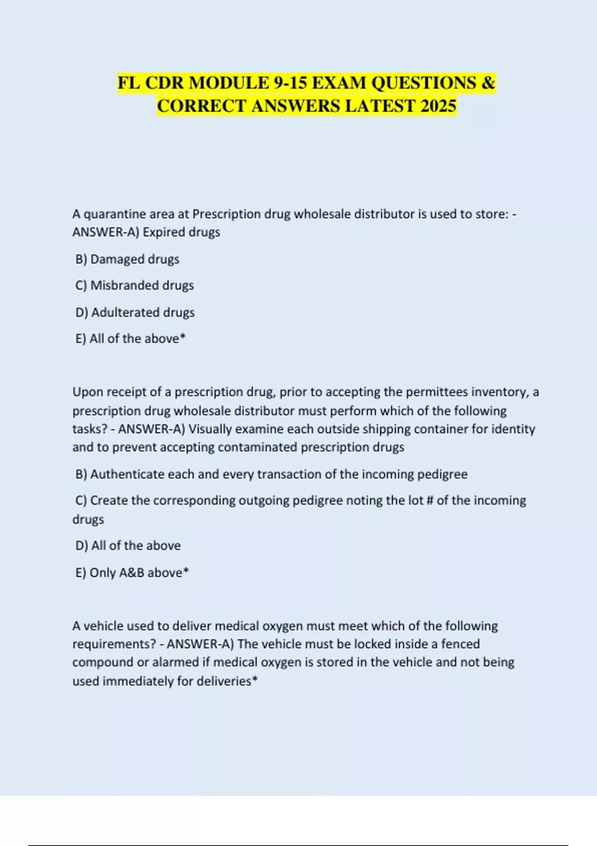 FL CDR MODULE 9-15 EXAM QUESTIONS &