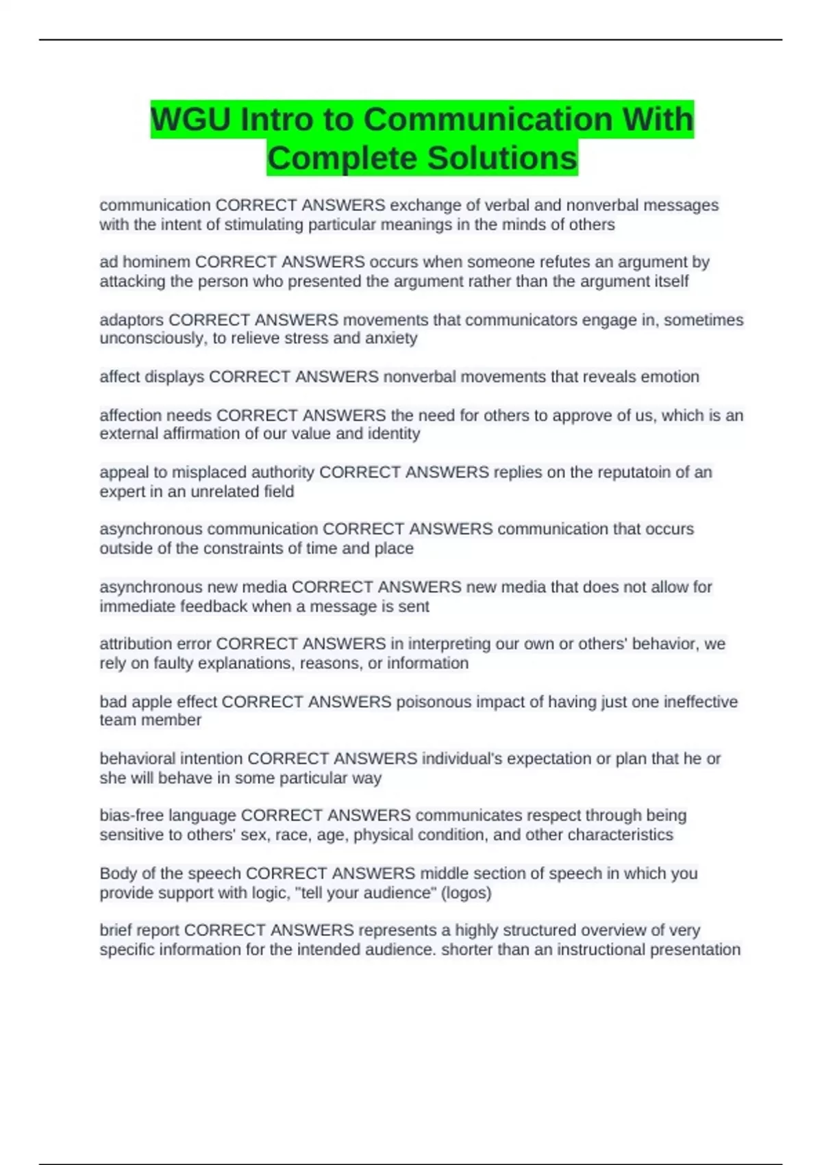 communication CORRECT ANSWERS exchange of verbal and nonverbal messages