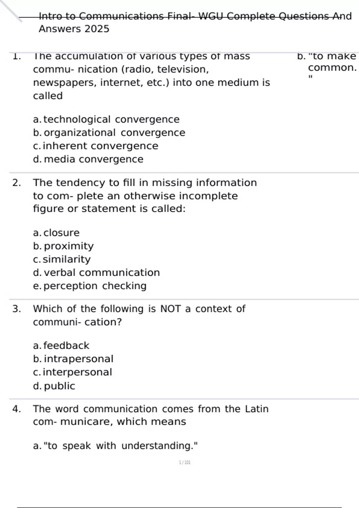 , Intro to Communications Final- WGU Complete Questions And