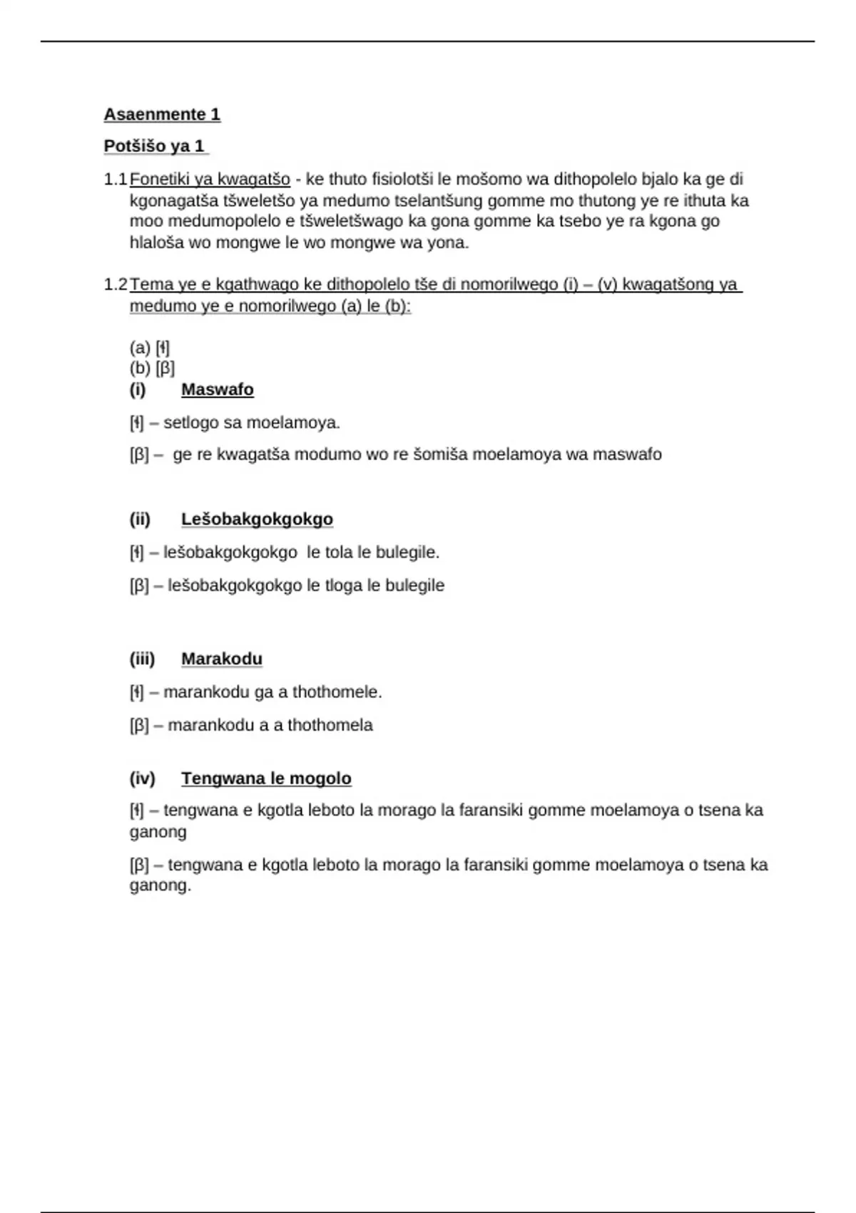 1.1 Fonetiki ya kwagatšo - ke thuto fisiolotši le mošomo wa dithopolelo bjalo ka ge di