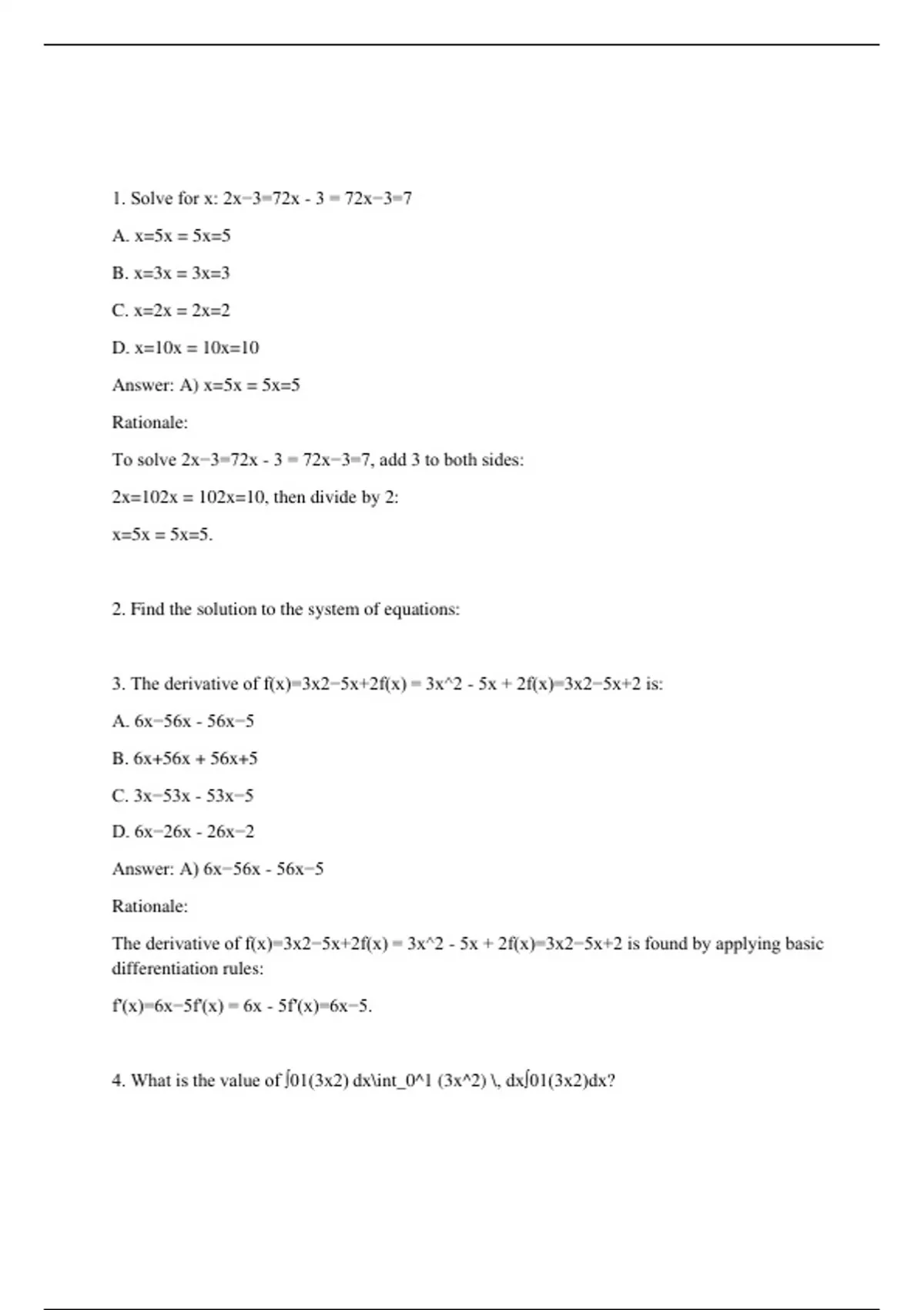3. The derivative of f(x)=3x2−5x+2f(x) = 3x^2 - 5x + 2f(x)=3x2−5x+2 is: