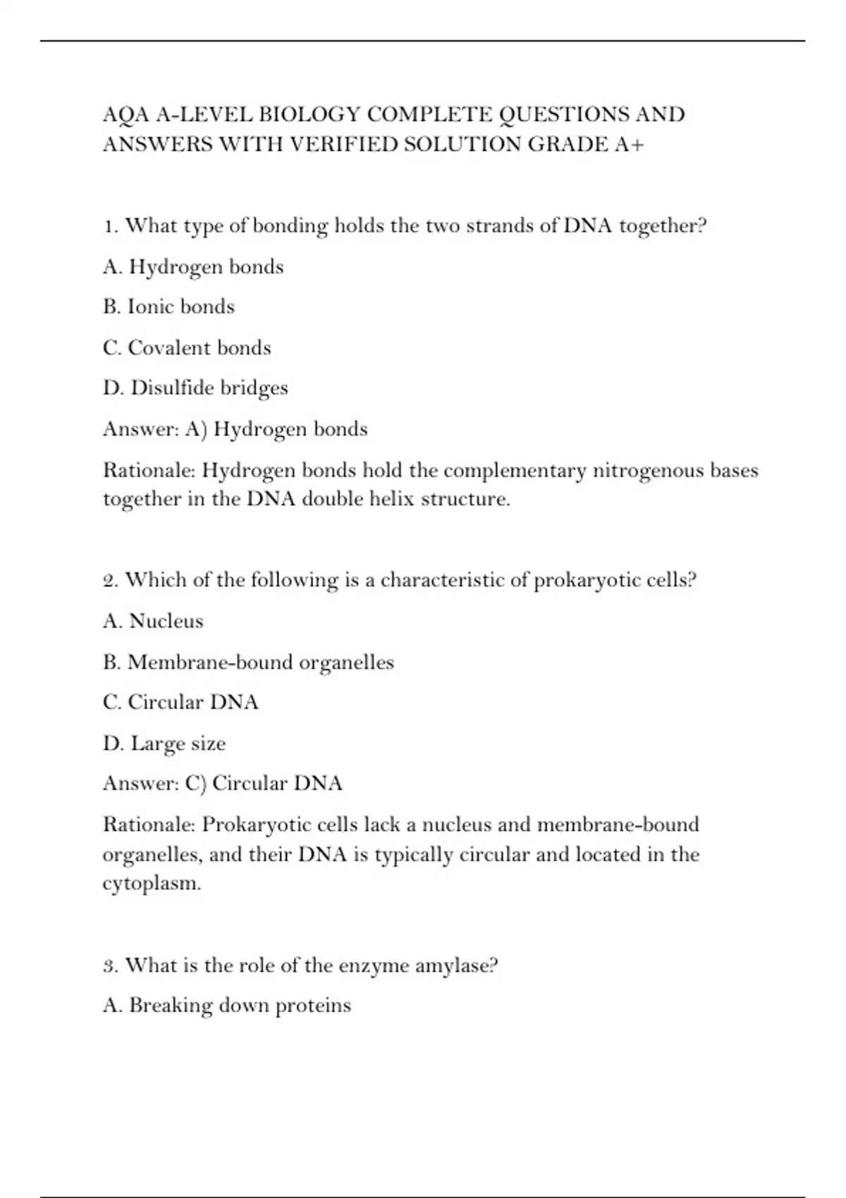 AQA A-LEVEL BIOLOGY COMPLETE QUESTIONS AND