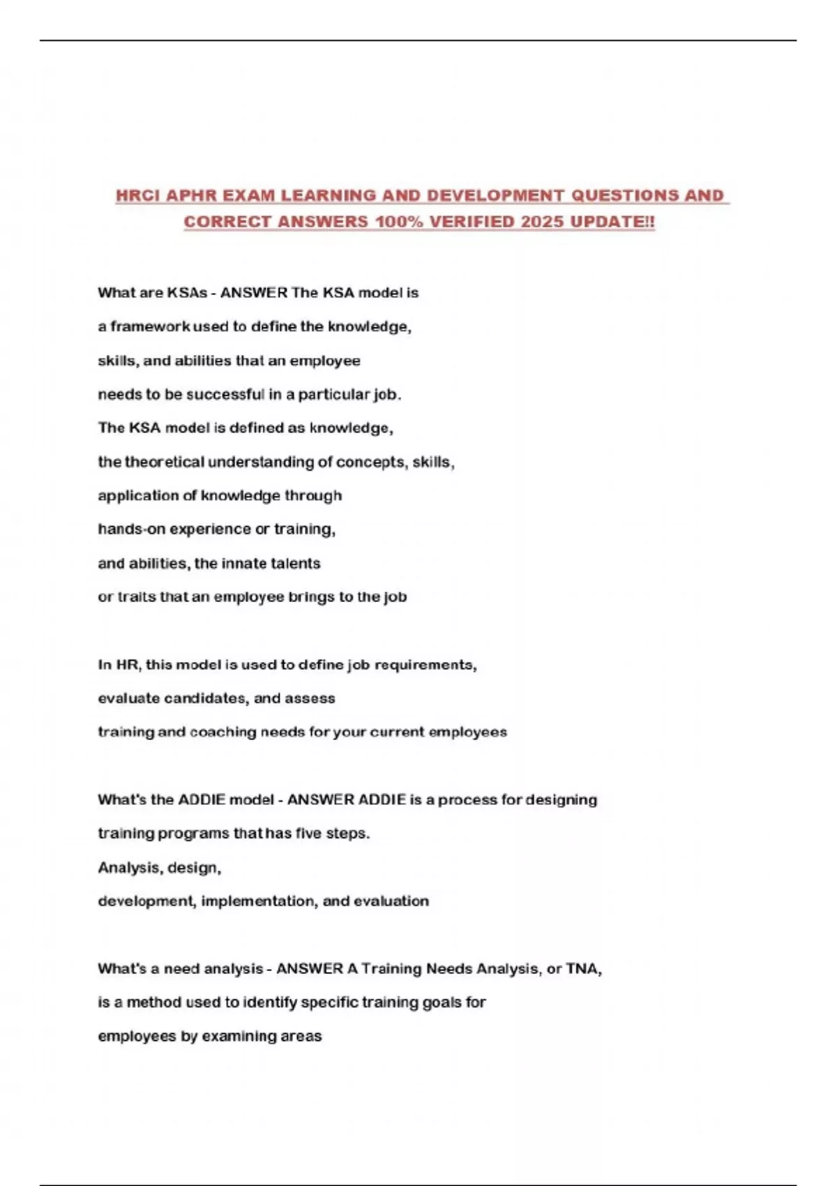 HRCI APHR EXAM LEARNING AND DEVELOPMENT QUESTIONS AND CORRECT ANSWERS 100% VERIFIED 2025 UPDATE!!...