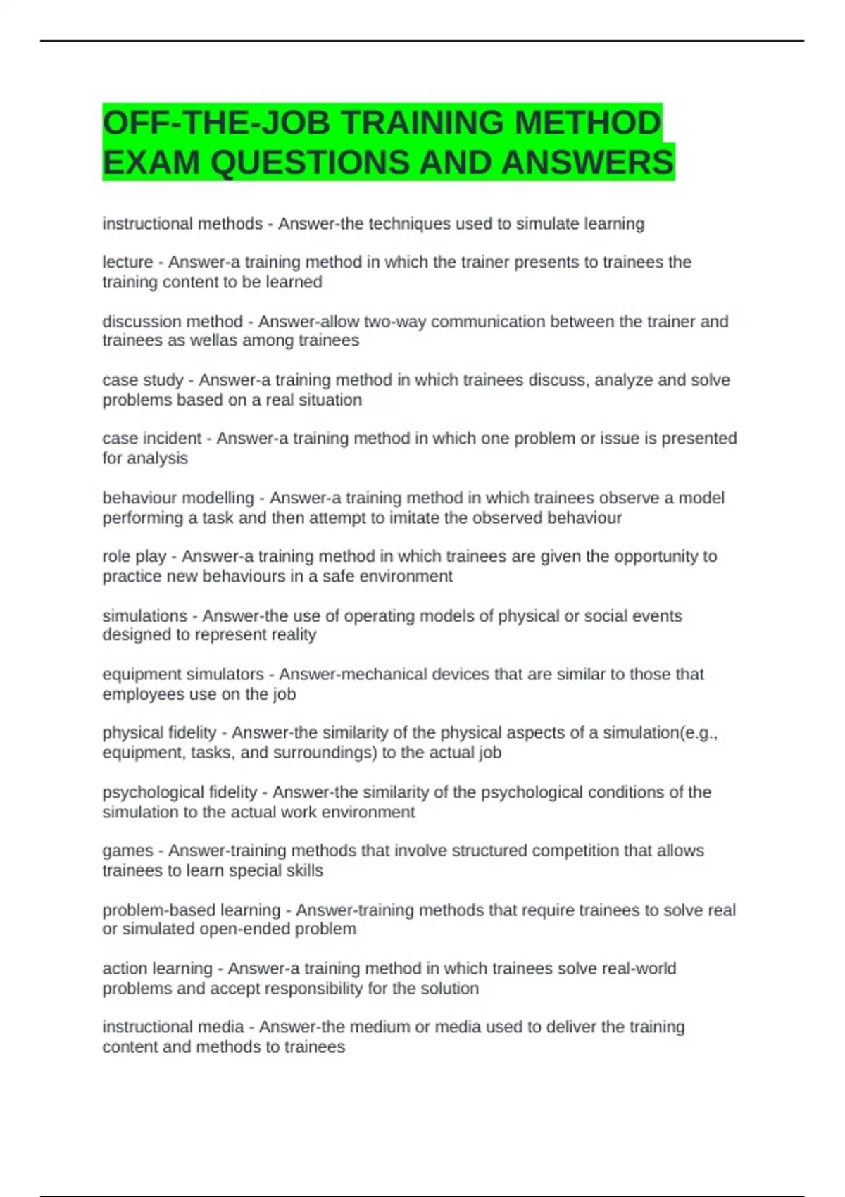 OFF-THE-JOB TRAINING METHOD