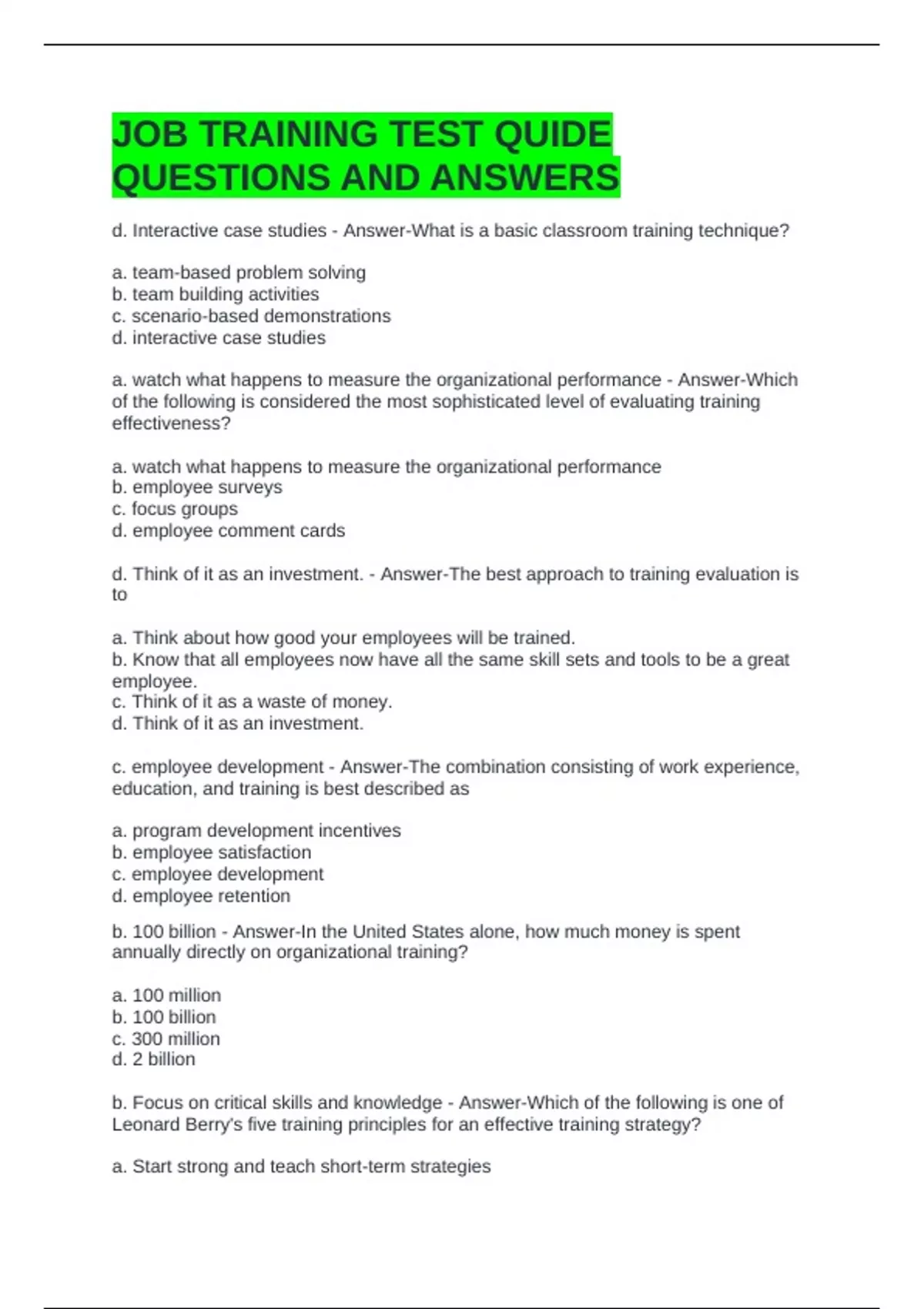 JOB TRAINING TEST QUIDE QUESTIONS AND ANSWERS