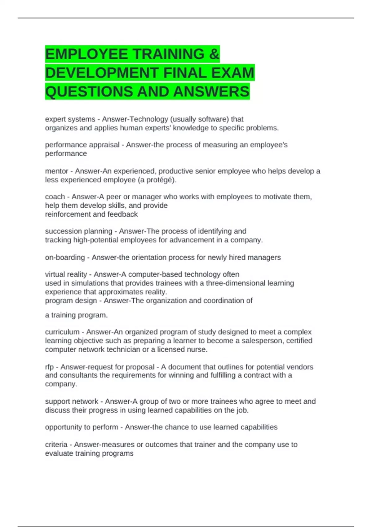 criteria - Answer-measures or outcomes that trainer and the company use to