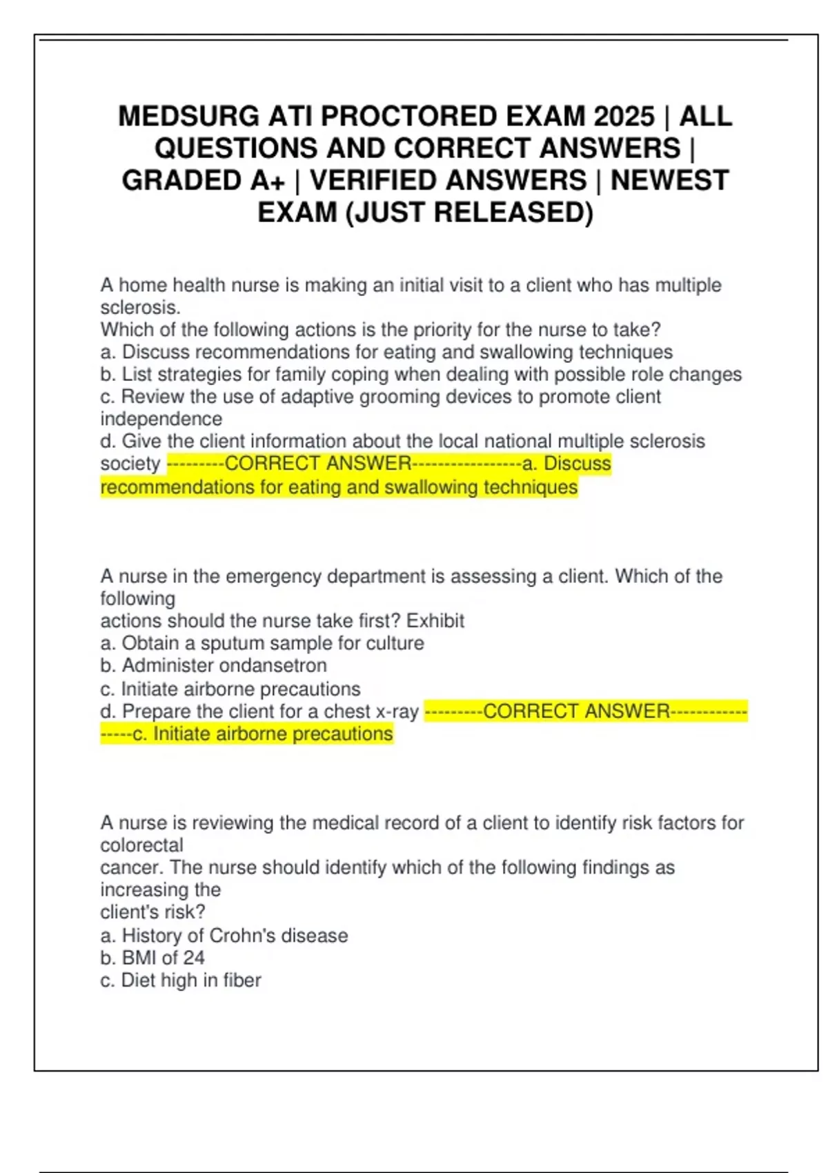 QUESTIONS AND CORRECT ANSWERS |