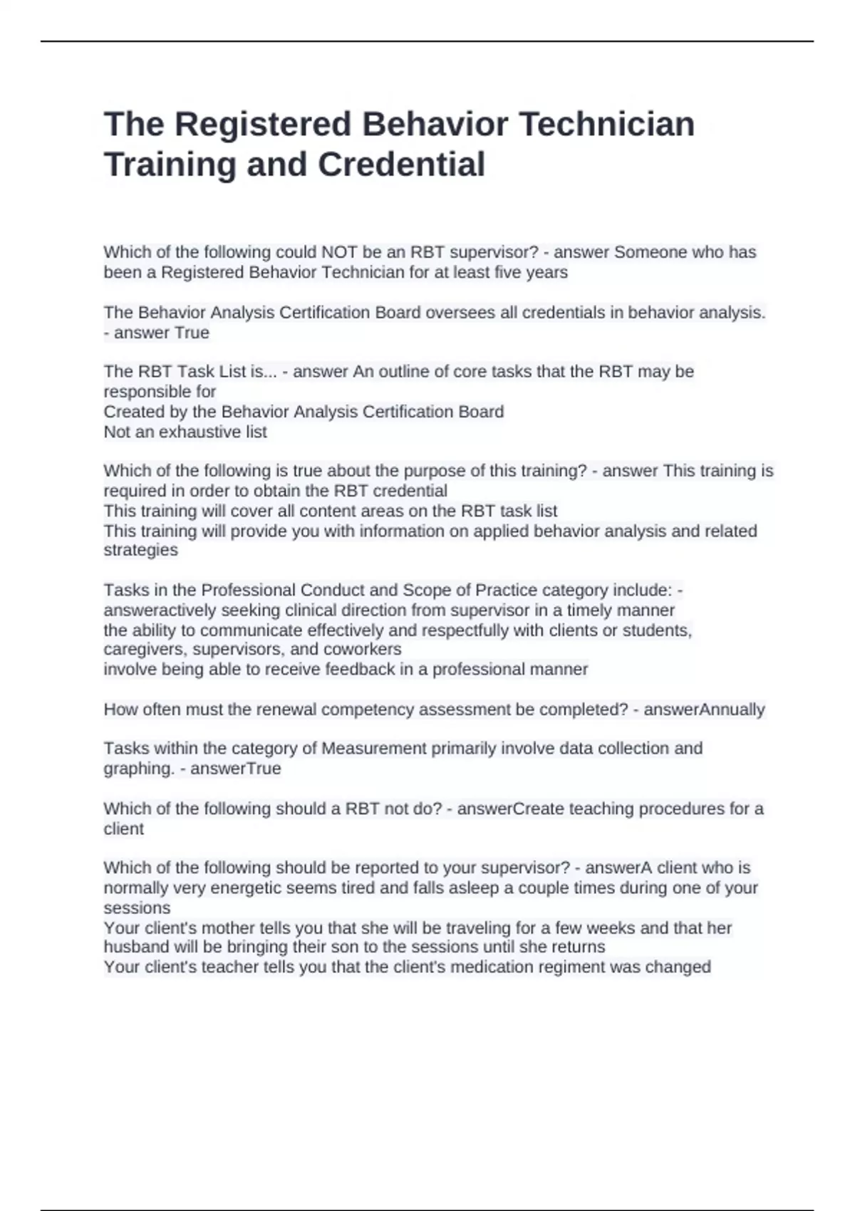 Which of the following could NOT be an RBT supervisor? - answer Someone who has