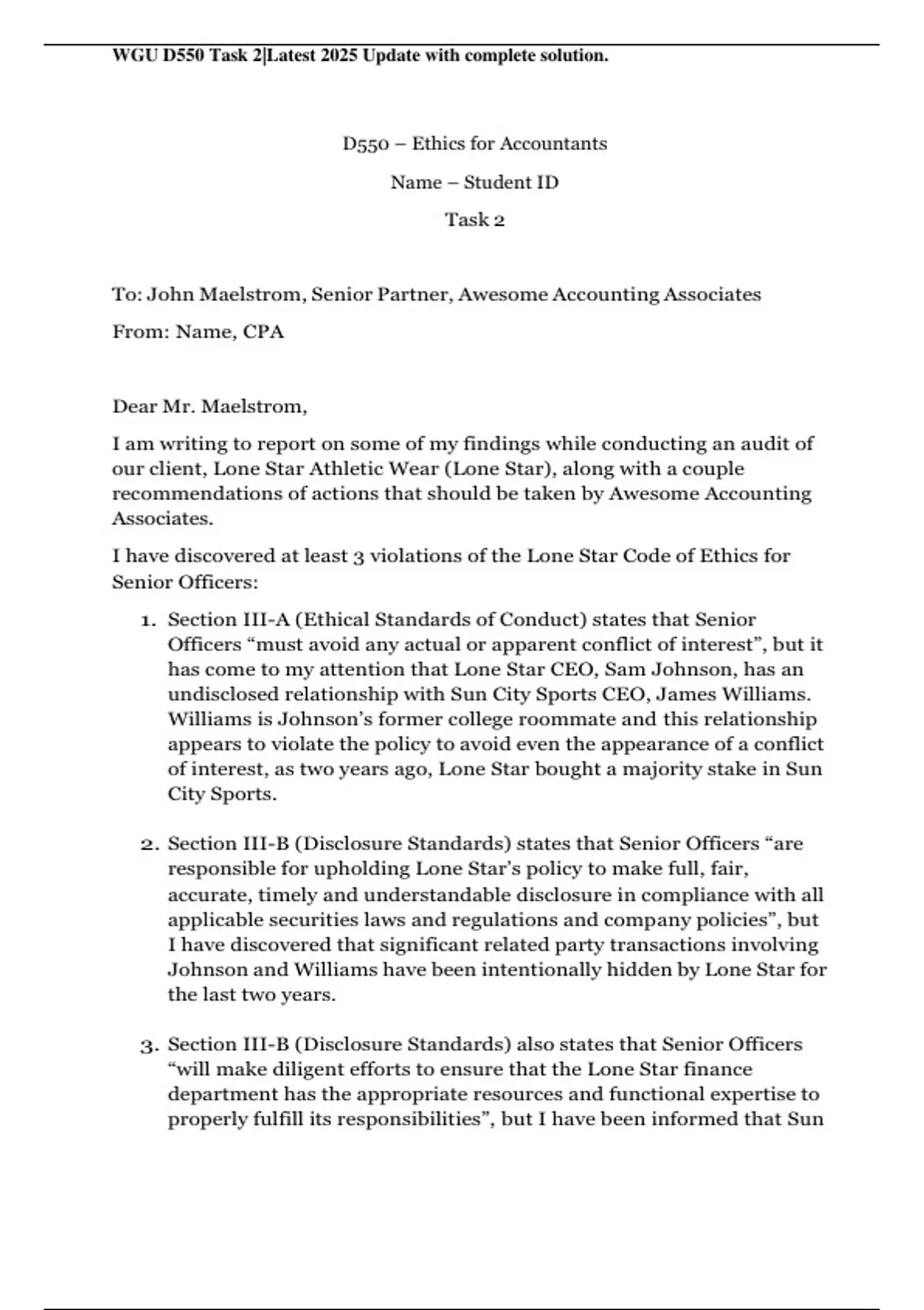 WGU D550 Task 2|Latest 2025 Update with complete solution.