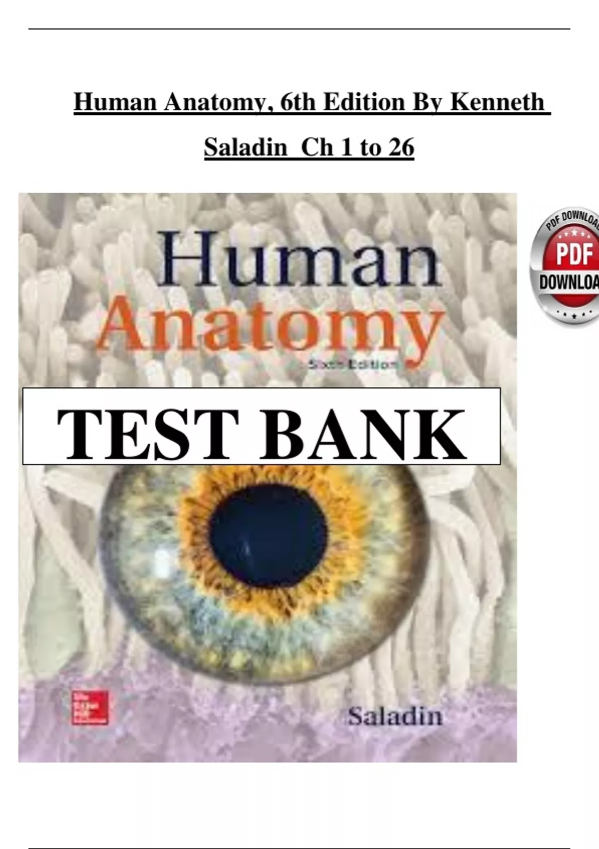 Test Bank for Human anatomy 6th edition by Kenneth Saladin Chapters 1-26