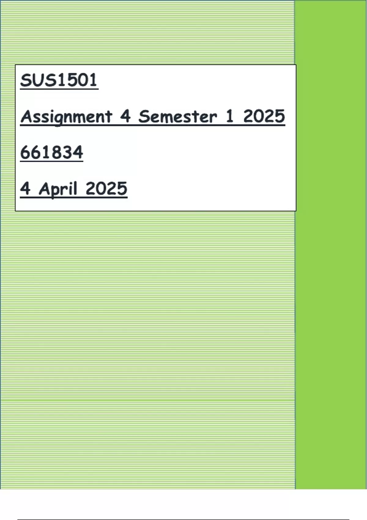 SUS1501 Assignment 4 Semester 1 2025, (661834) 4TH April 2025 ANSWERS.