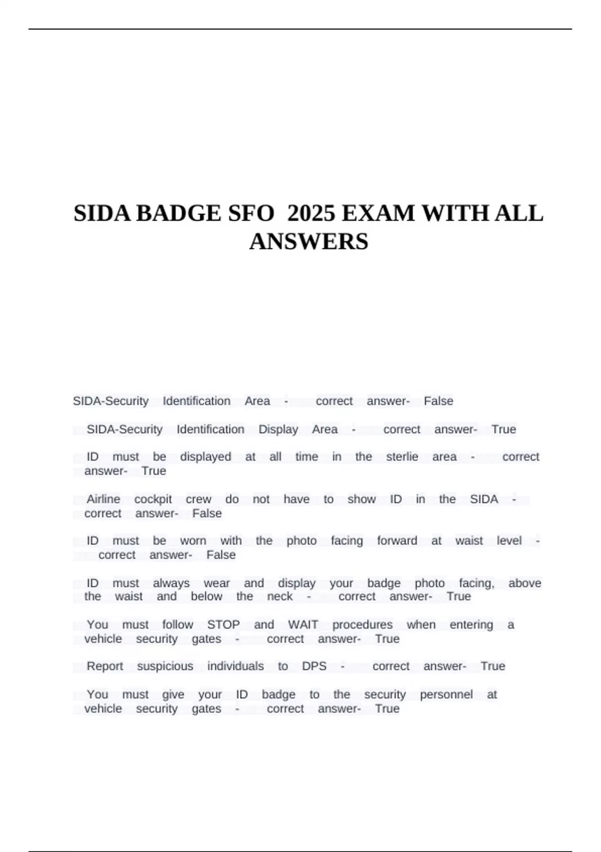 SIDA BADGE SFO 2025 EXAM WITH ALL