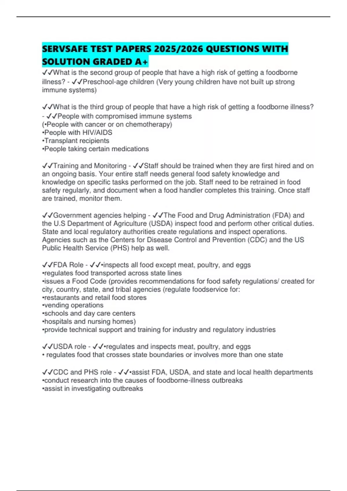 SERVSAFE TEST PAPERS 2025/2026 QUESTIONS WITH SOLUTION GRADED A+