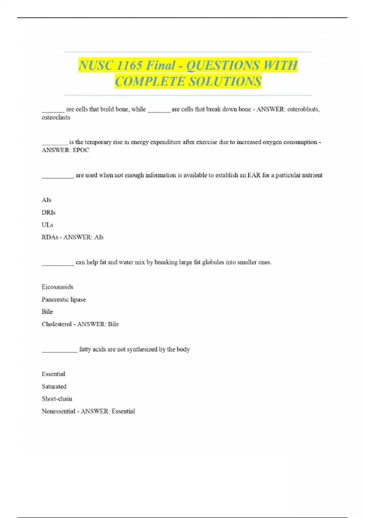 NUSC 1165 Final - QUESTIONS WITH COMPLETE SOLUTIONS