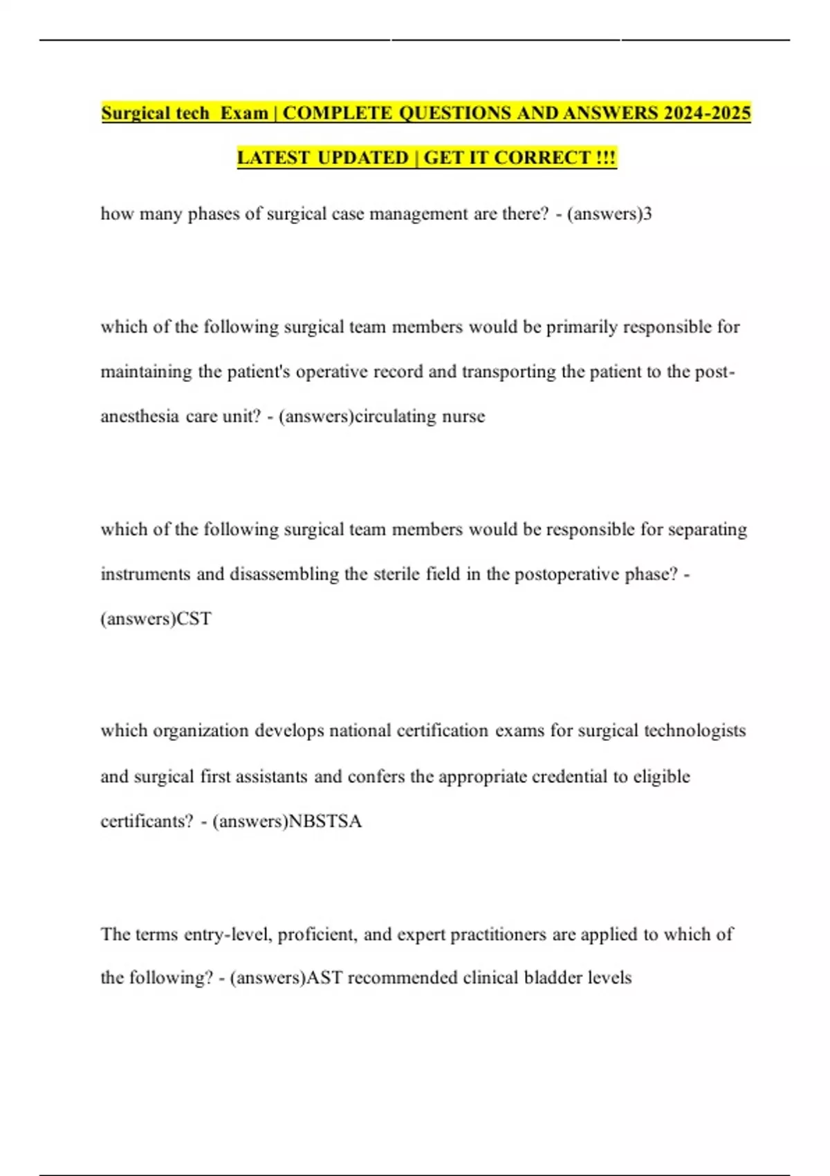 Surgical tech Exam | COMPLETE QUESTIONS AND ANSWERS 2024-2025