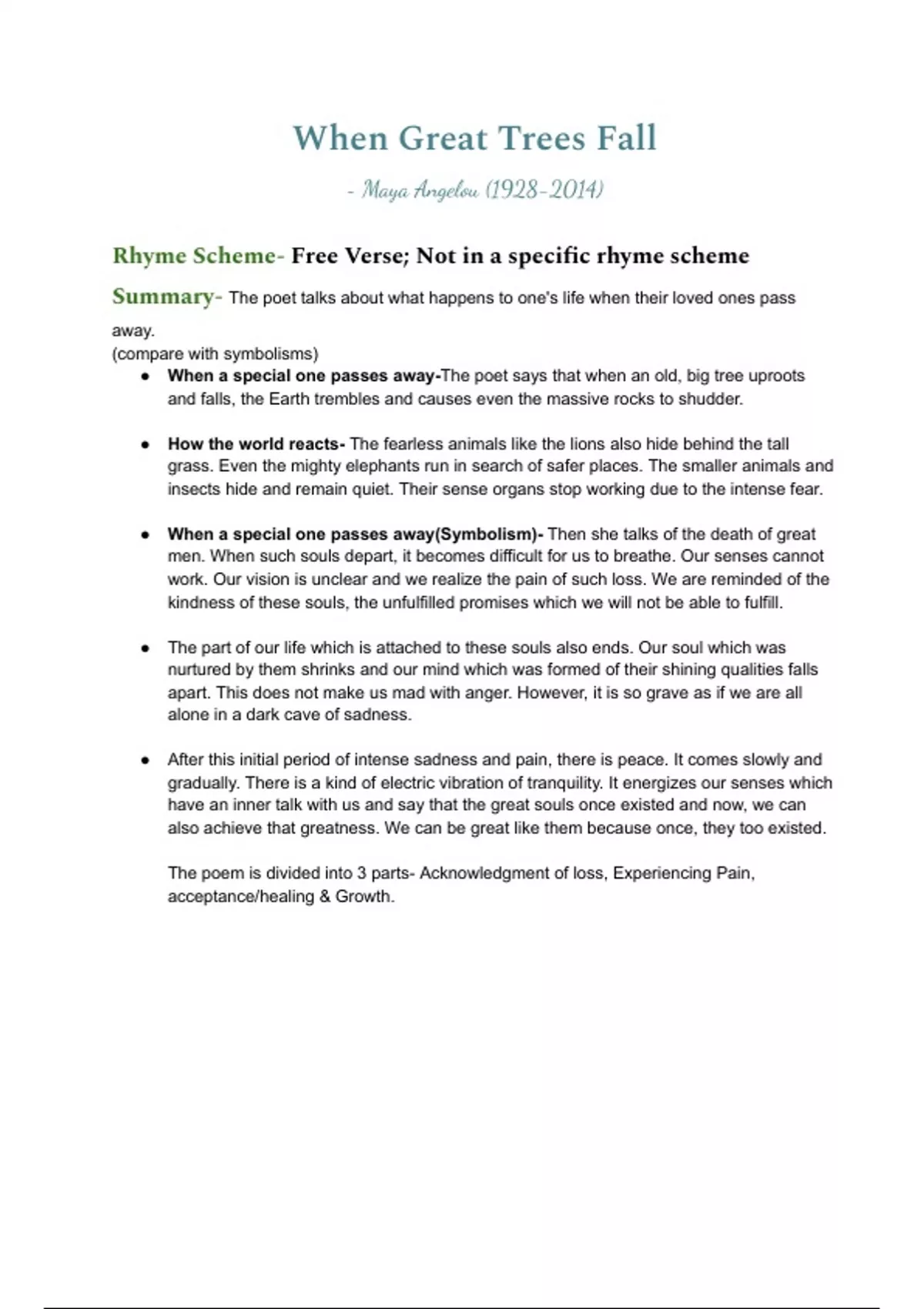 1st Stanza_ “When great trees fall…..eroded beyond fear”