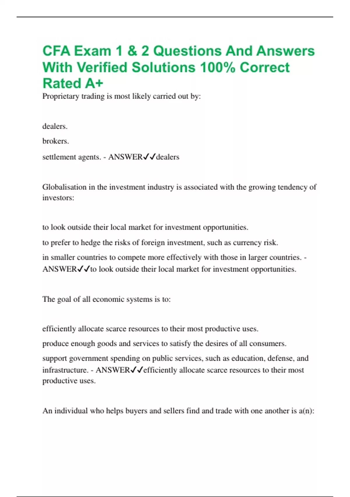 CFA Exam 1 & 2 Questions And Answers