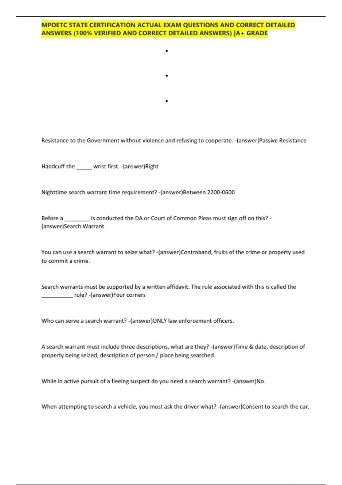 MPOETC STATE CERTIFICATION ACTUAL EXAM QUESTIONS AND CORRECT DETAILED