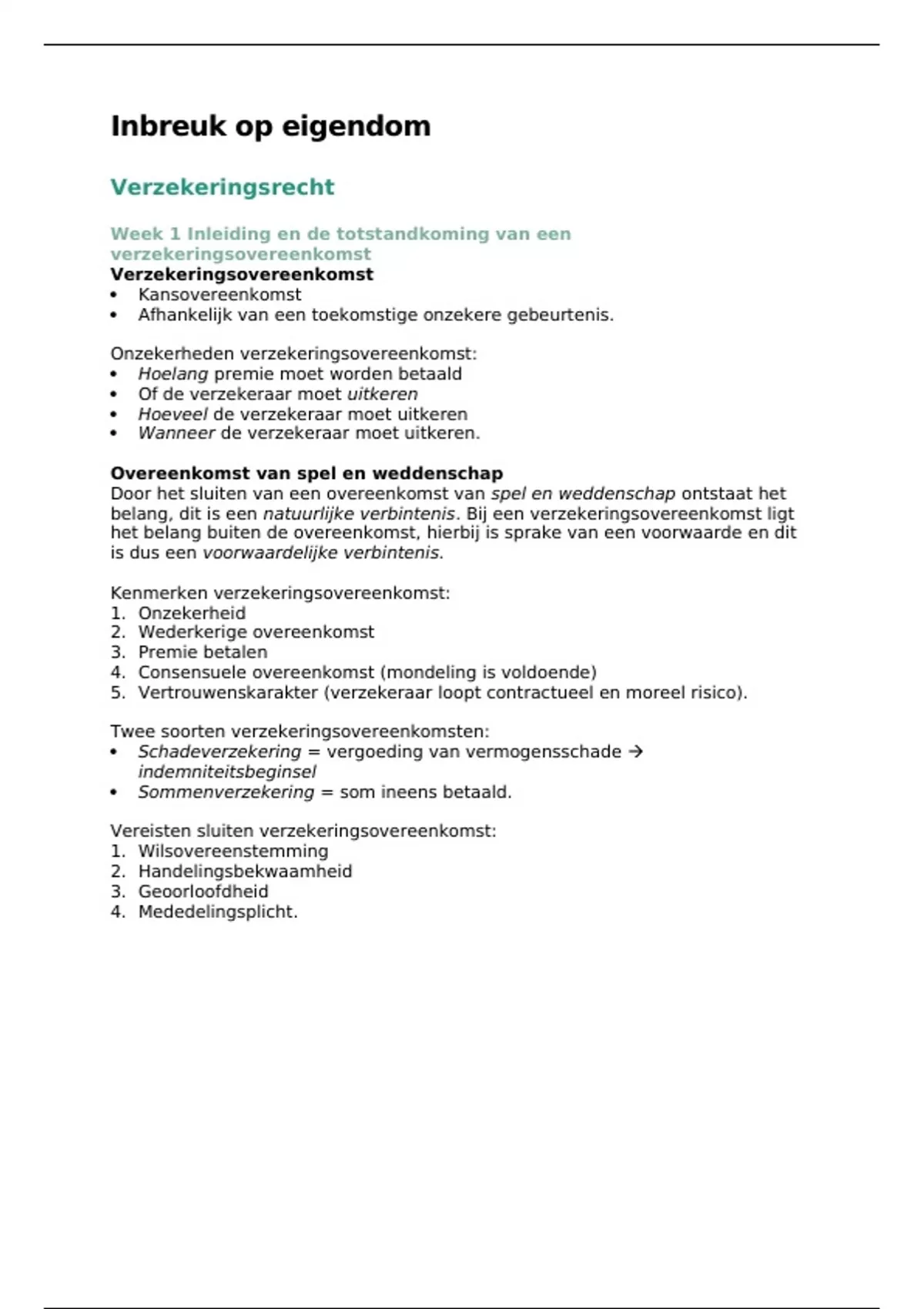 Complete samenvatting van aantekeningen en het boek voor inbreuk op eigendom, onderdelen verzekeringsrecht en executierecht. Eigen cijfer: 7.