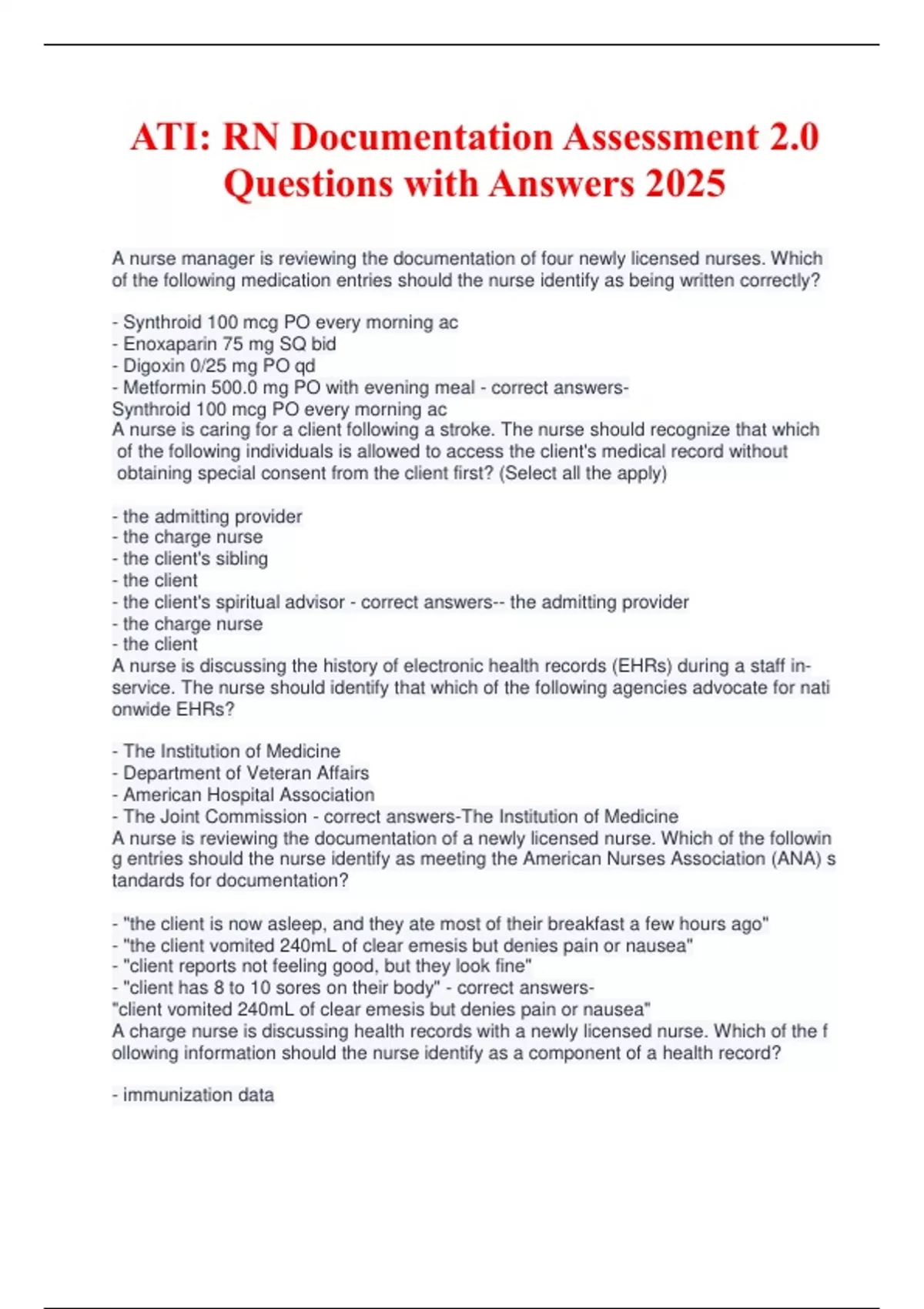 ATI: RN Documentation Assessment 2.0