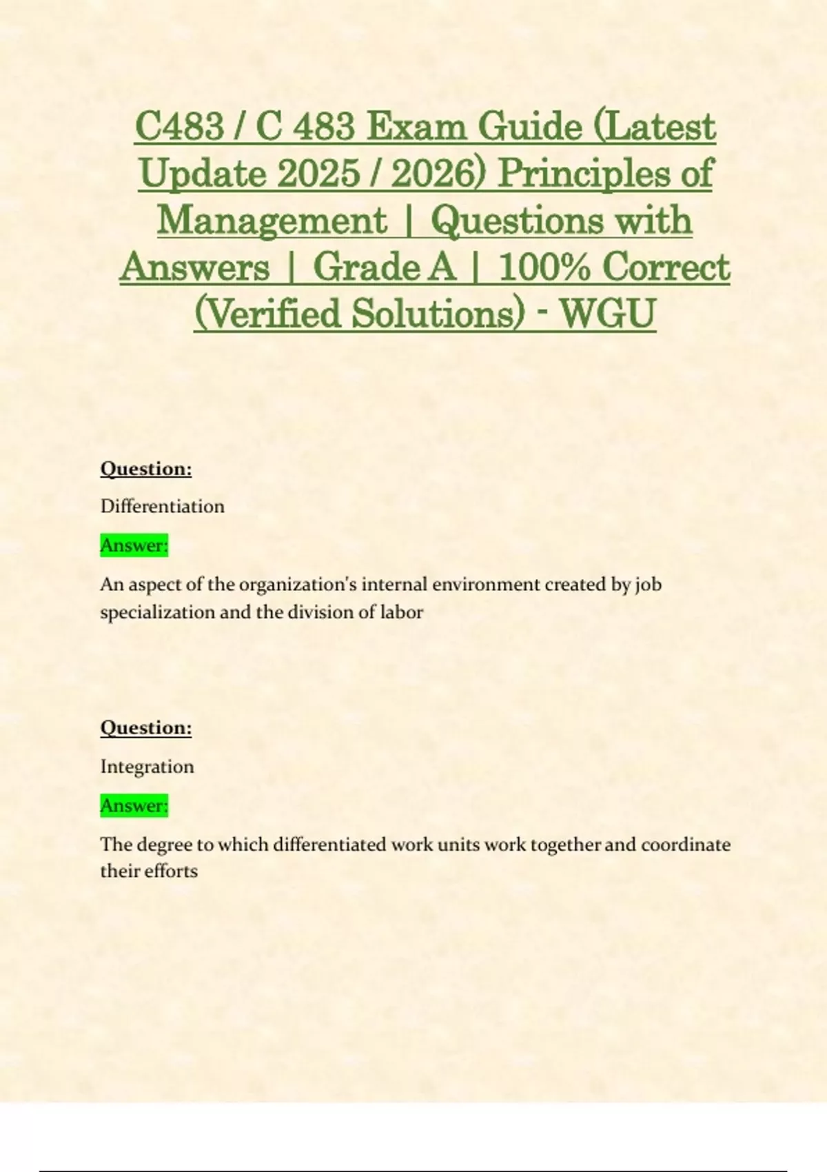 C483 / C 483 Exam Guide (Latest Update 2025 / 2026) Principles of Management | Questions with Answers | Grade A | 100% Correct (Verified Solutions) - WGU