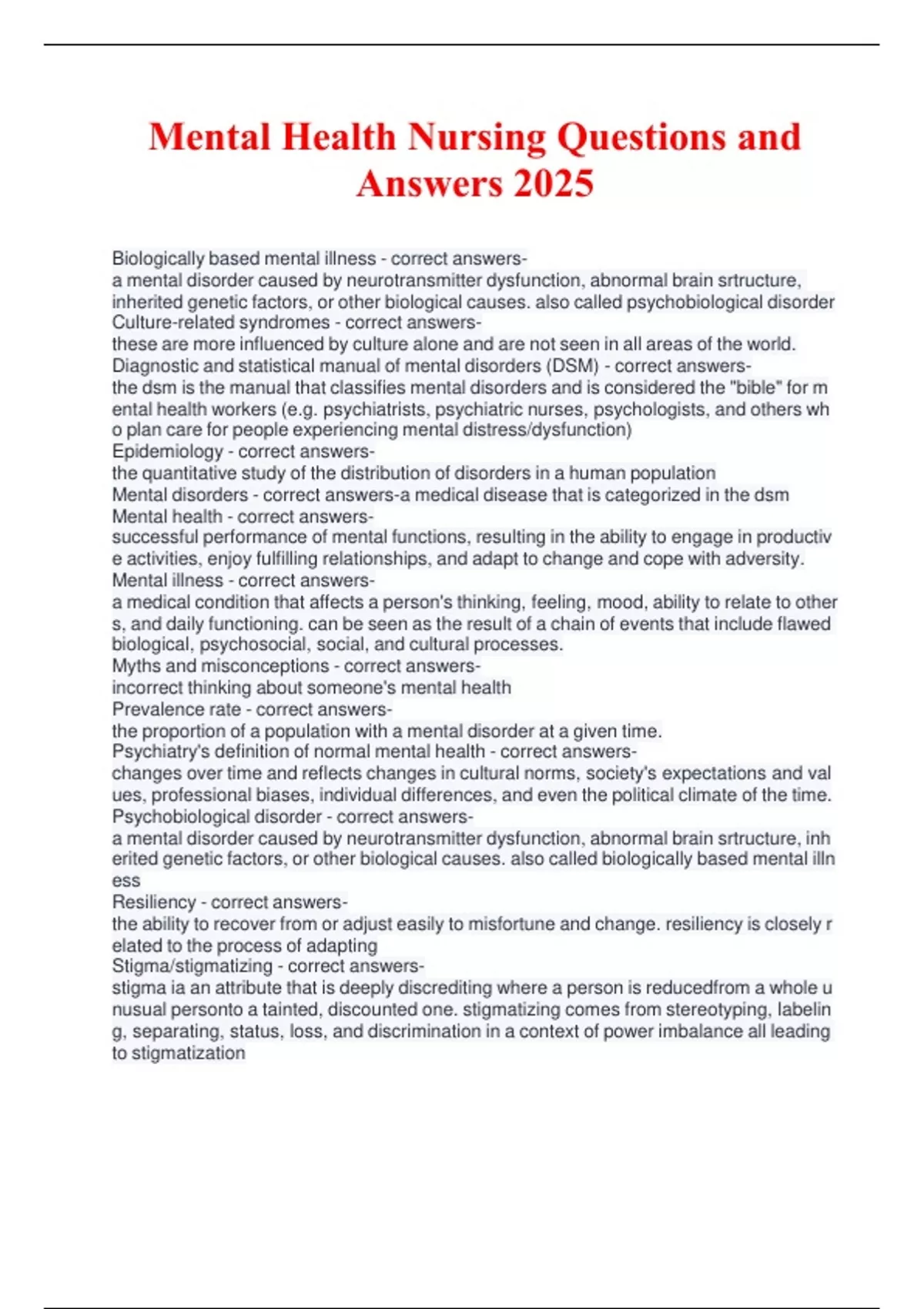 Diagnosticaandastatisticalamanualaofamentaladisordersa(DSM)A-acorrectaanswers-