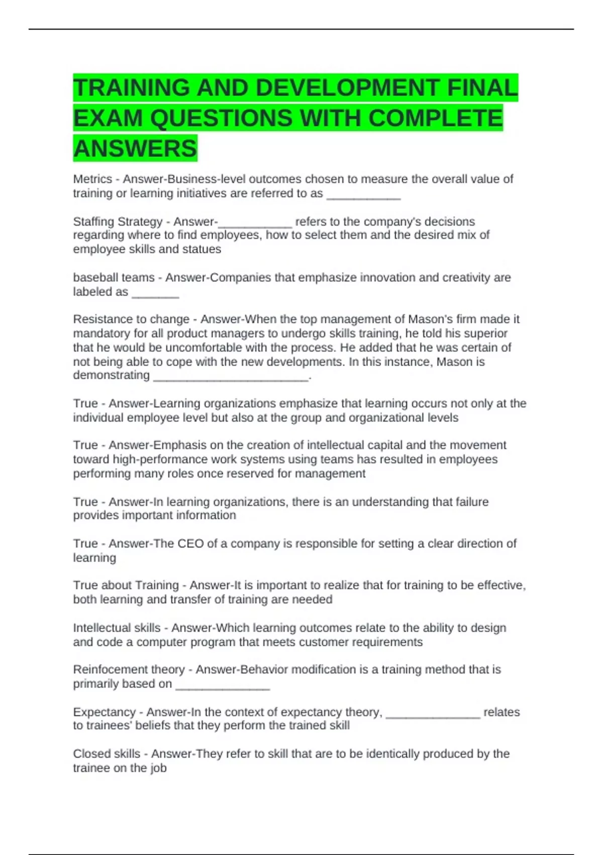 Self-directed learning - Answer-This method allows employees to take responsibility