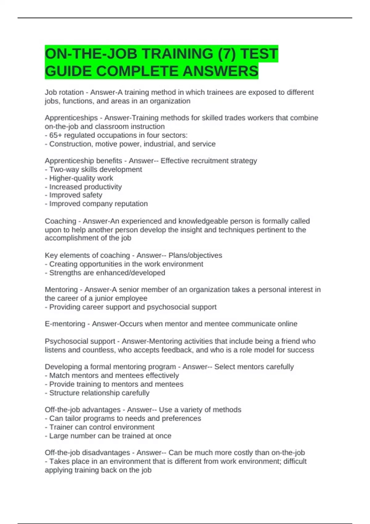 ON-THE-JOB TRAINING (7) TEST