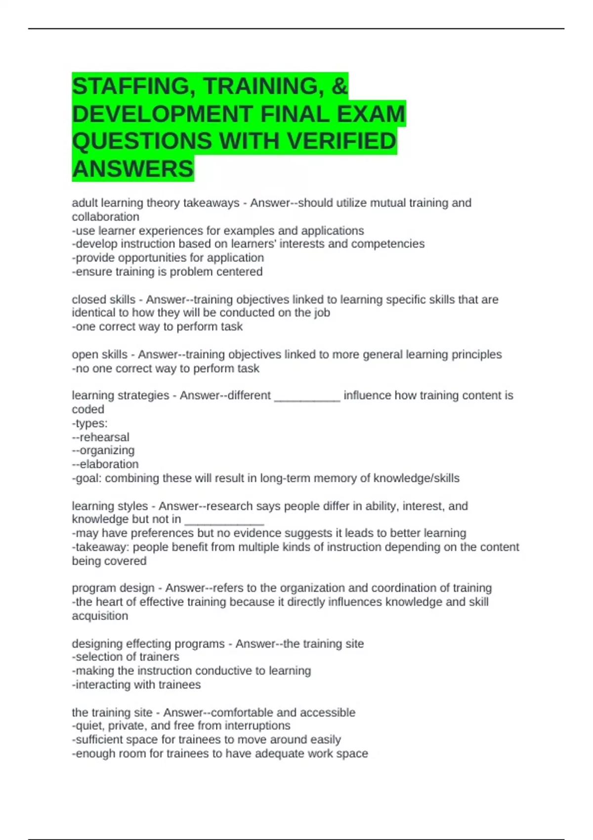 learning strategies - Answer--different __________ influence how training content is