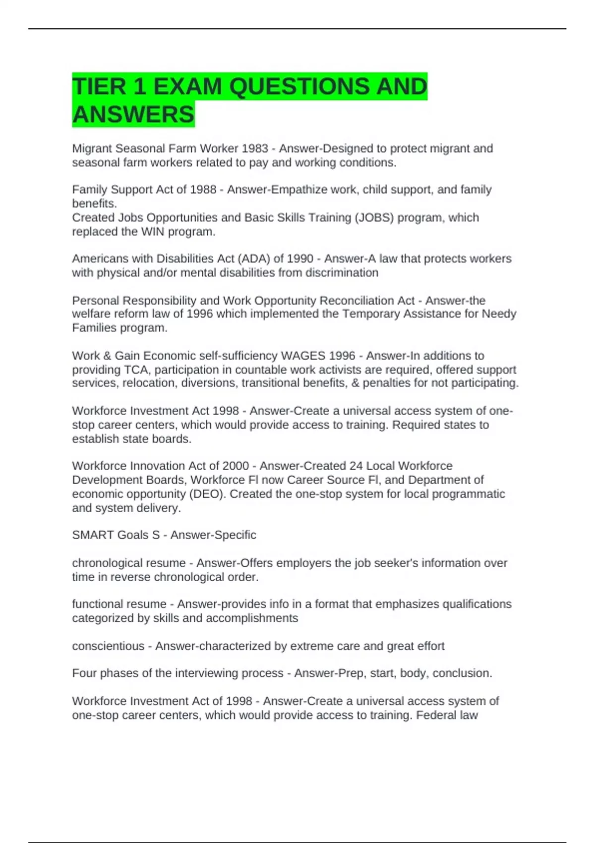 TIER 1 EXAM QUESTIONS AND