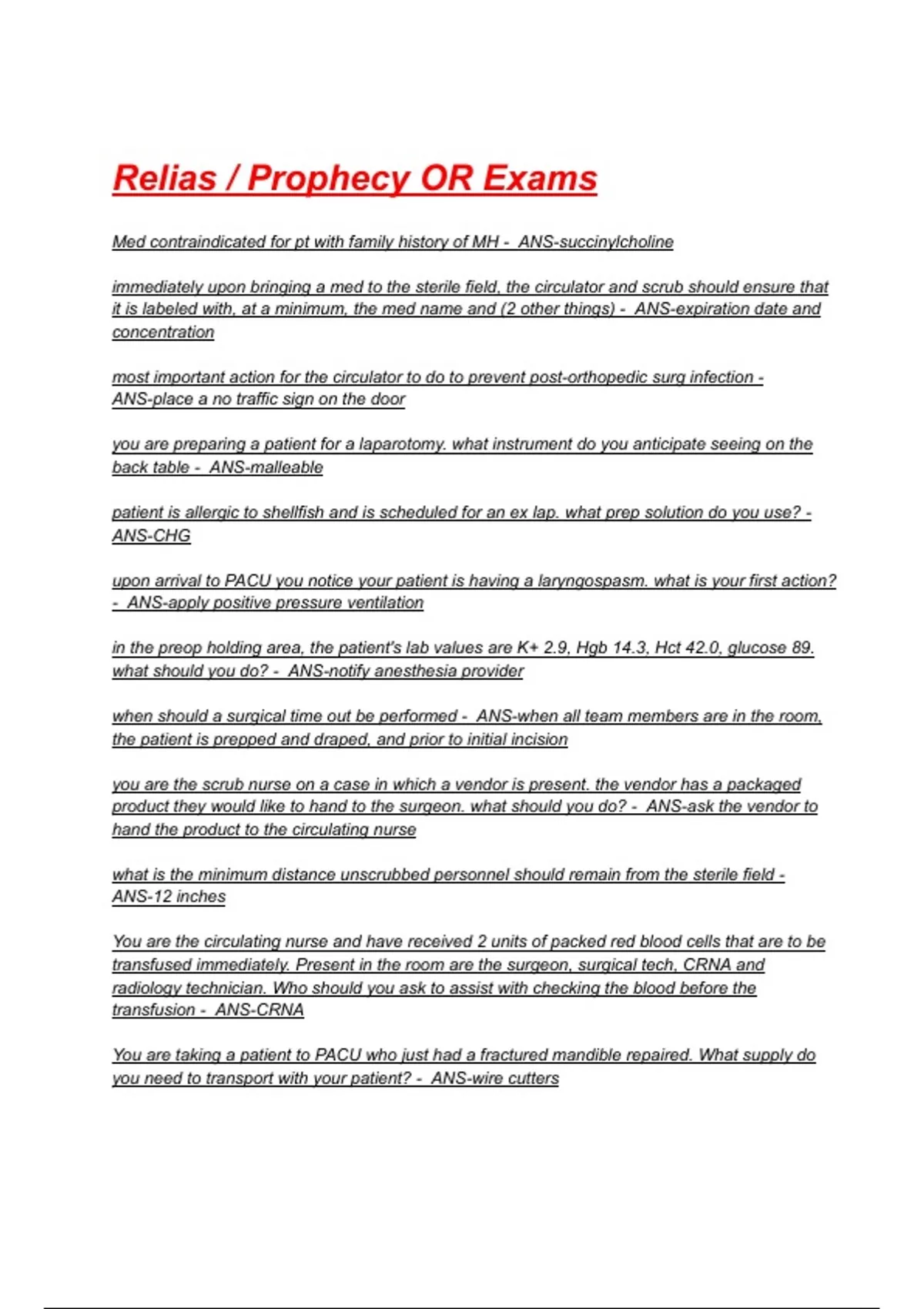 Relias / Prophecy OR Exams