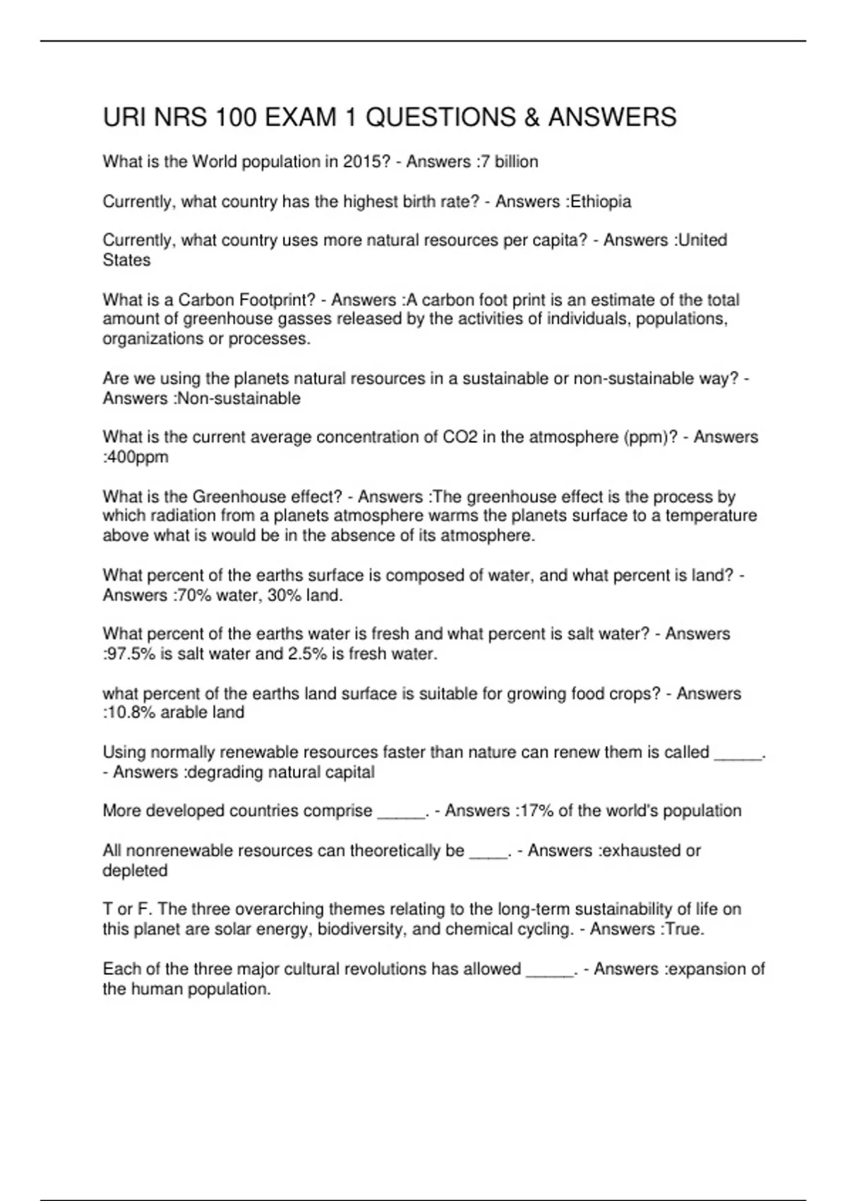URI NRS 100 EXAM 1 QUESTIONS & ANSWERS