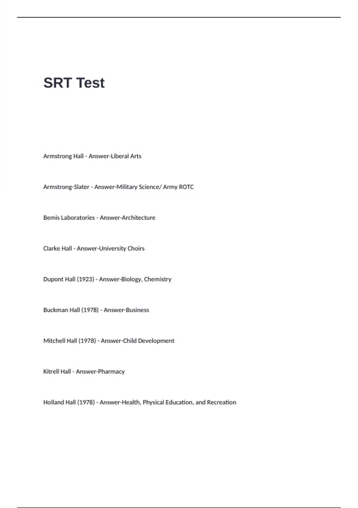 SRT Test Questions with Complete Questions and Correct Answers