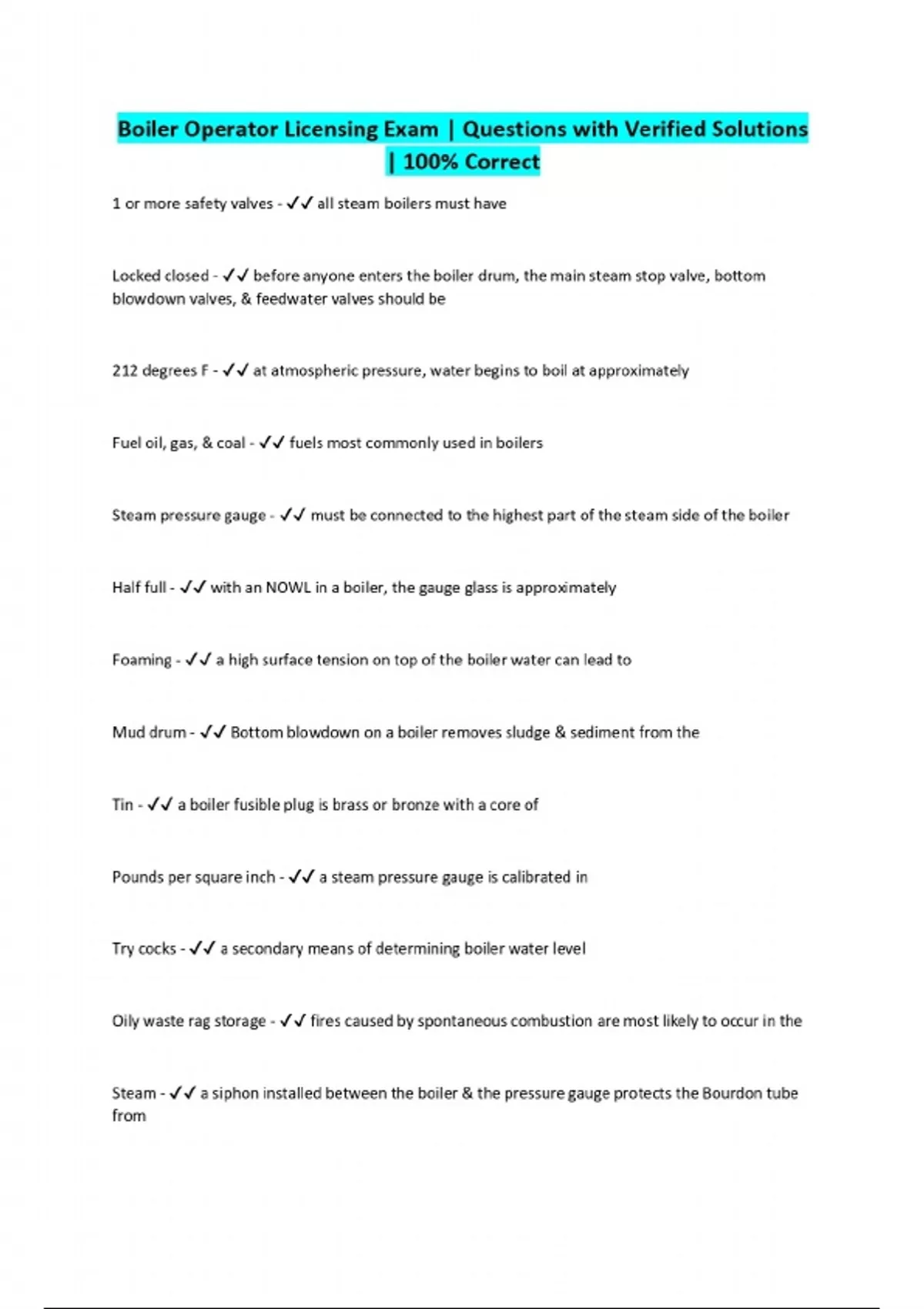 Boiler Operator Licensing Exam | Questions with Verified Solutions | 100% Correct
