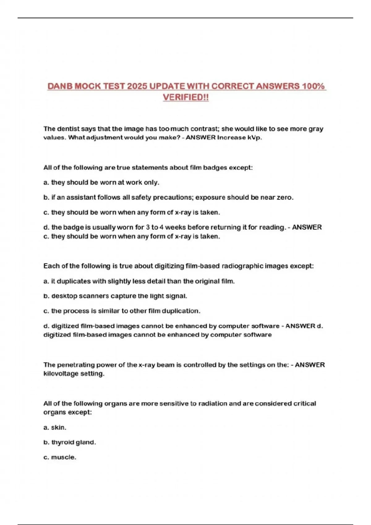 DANB MOCK TEST 2025 UPDATE WITH CORRECT ANSWERS 100% VERIFIED!!...