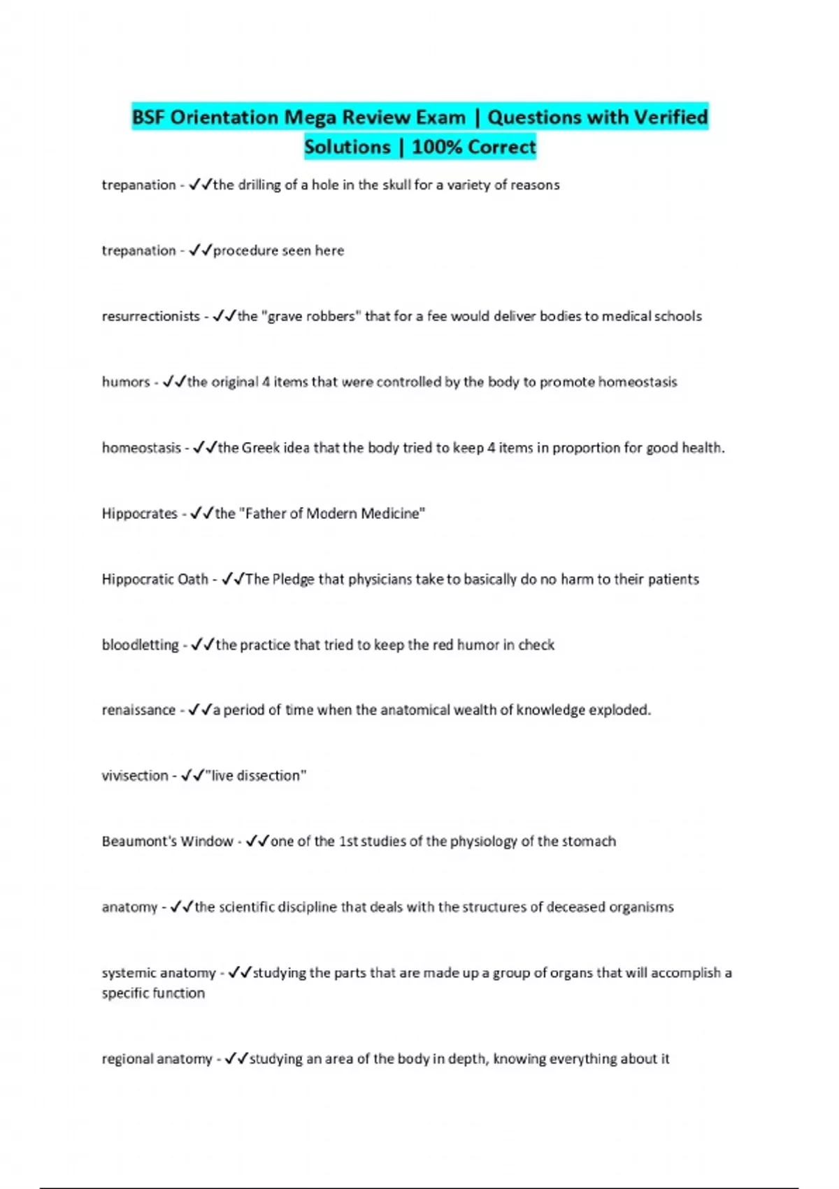 BSF Orientation Mega Review Exam | Questions with Verified Solutions | 100% Correct