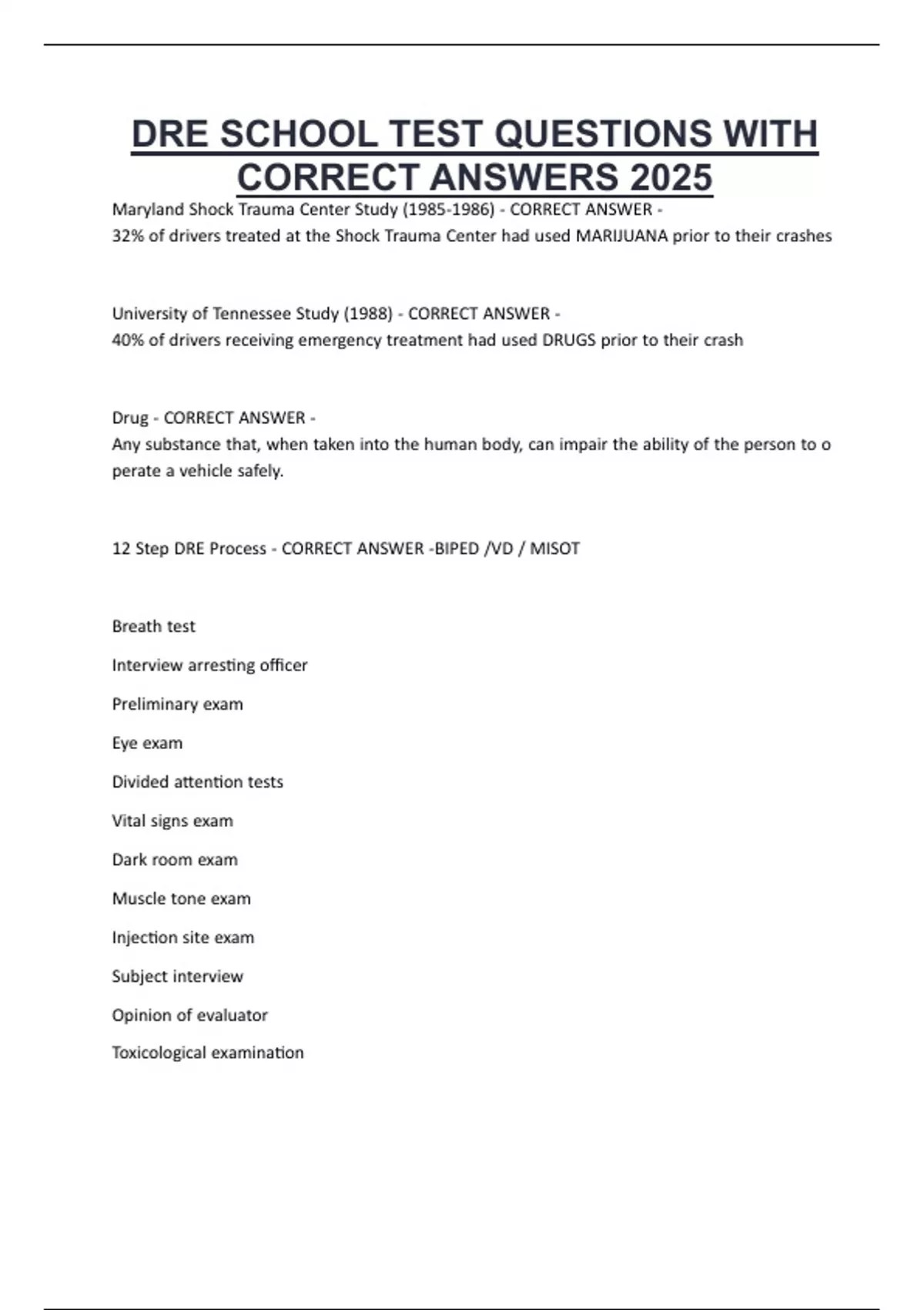 DRE SCHOOL TEST QUESTIONS WITH
