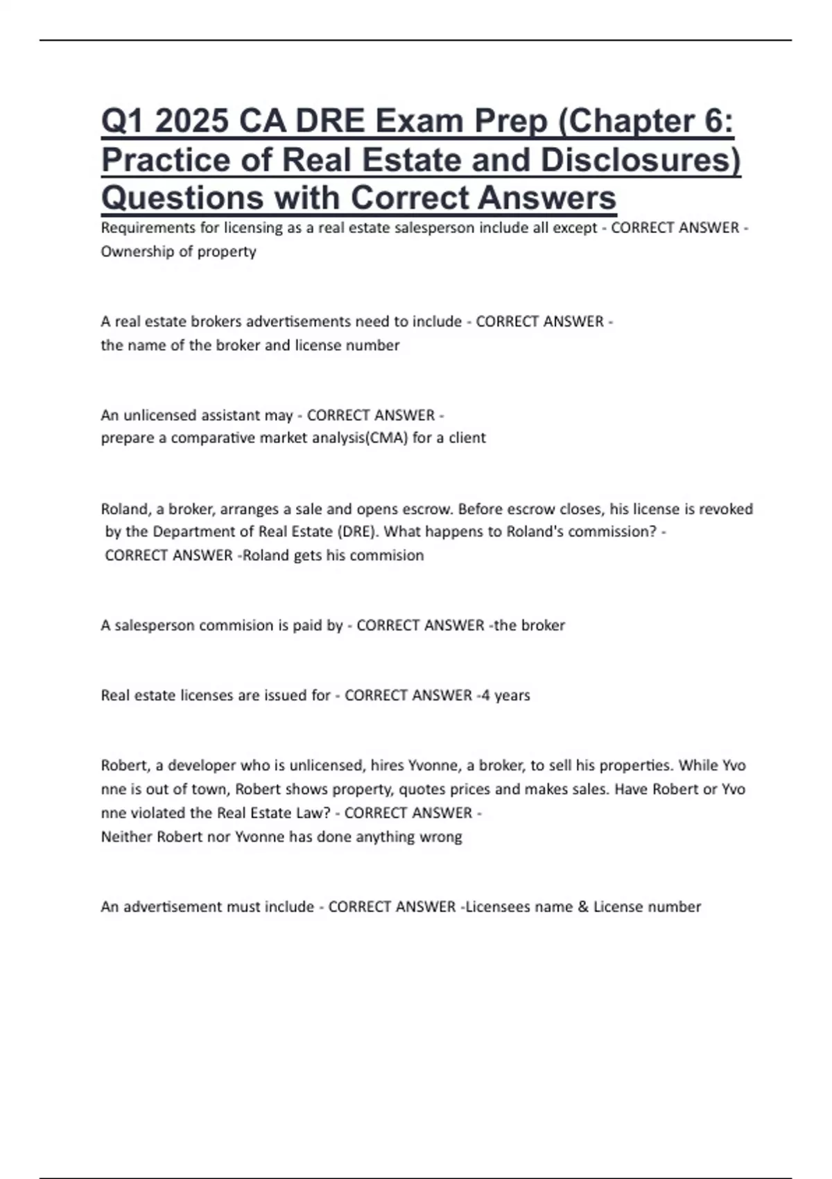 Q1 2025 CA DRE Exam Prep (Chapter 6: