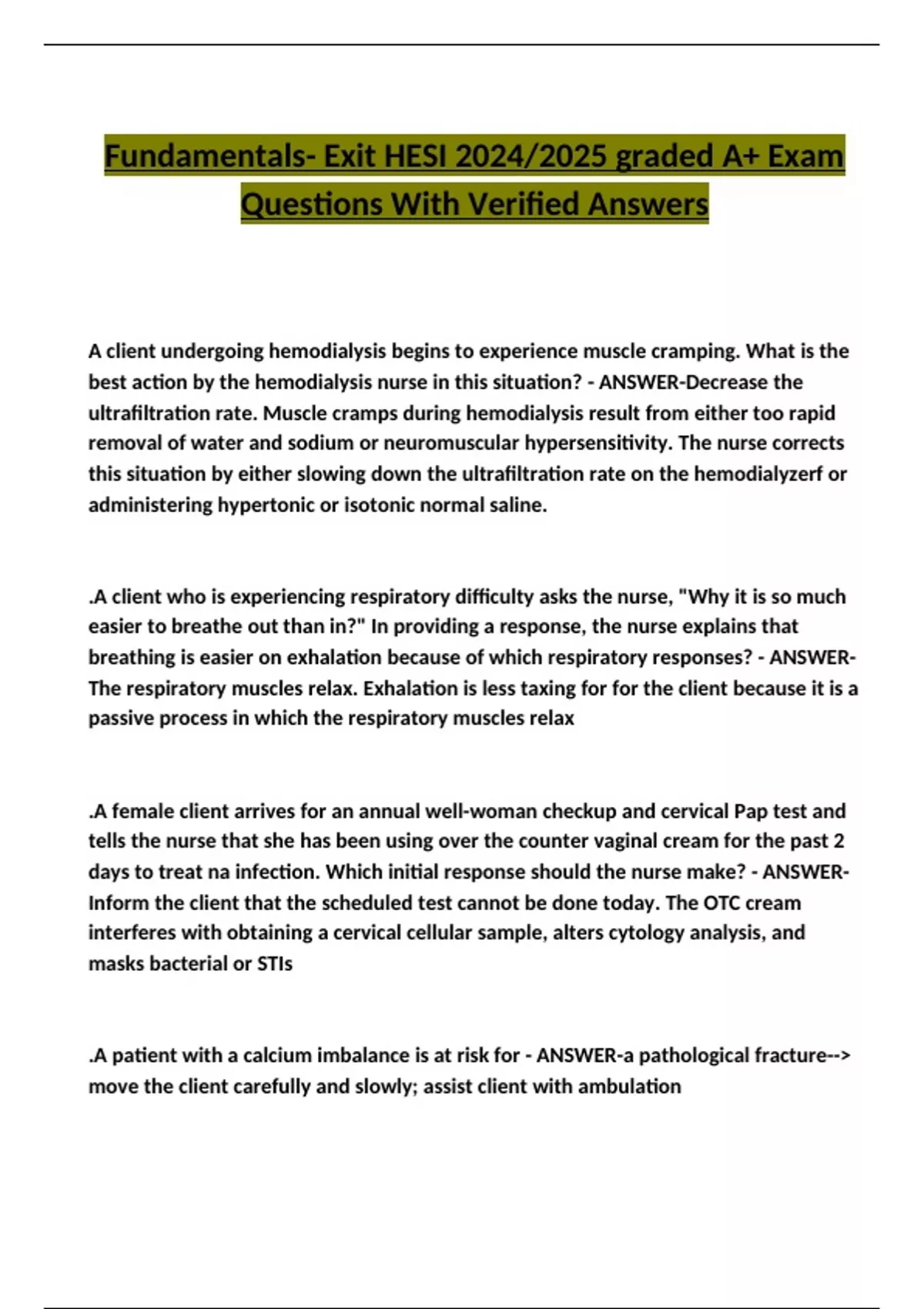Fundamentals- Exit HESI 2024/2025 graded A+ Exam Questions With Verified Answers